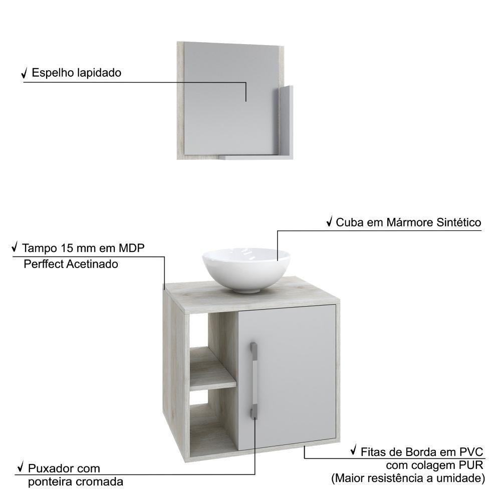 Conjunto Balcão C-cuba R30 E Espelheira Soft 500 Snow Snow C-branco Chess