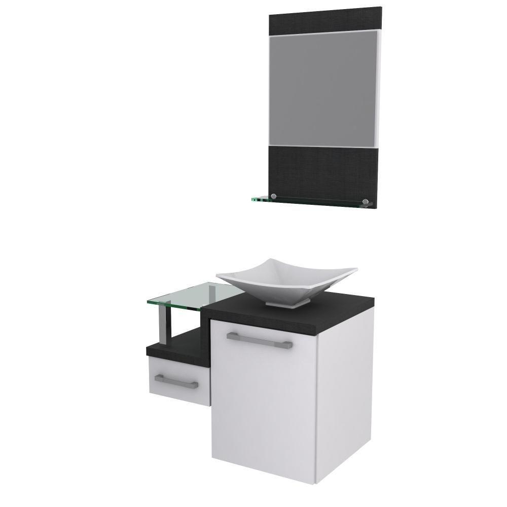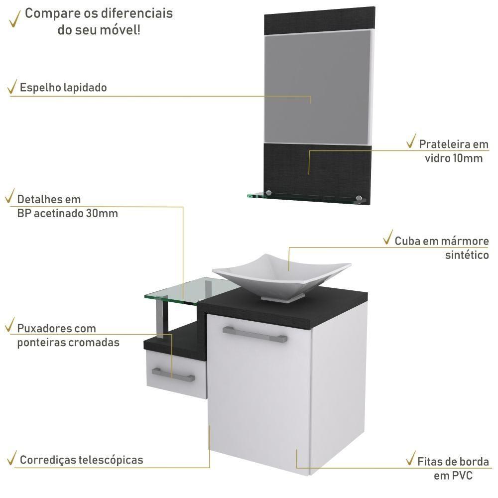 Gabinete Para Banheiro C-cuba L34 E Espelheira Legno 631 Branco Chess C-preto ônix