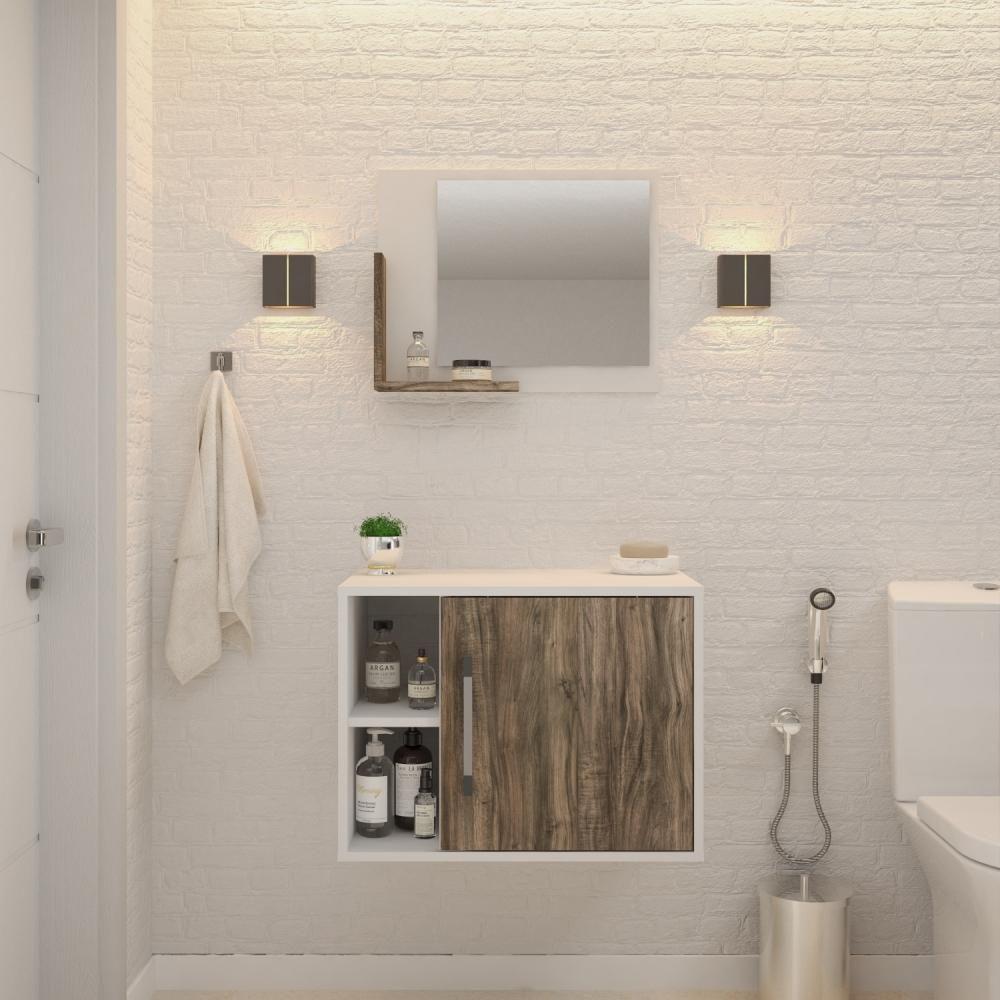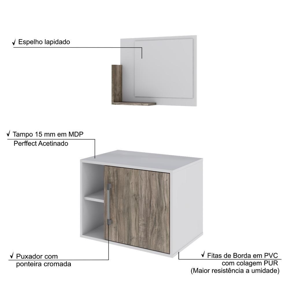 Conjunto Balcão E Espelheira Soft 600 Perffect Acetinado Branco Chess C-carvalho Dark