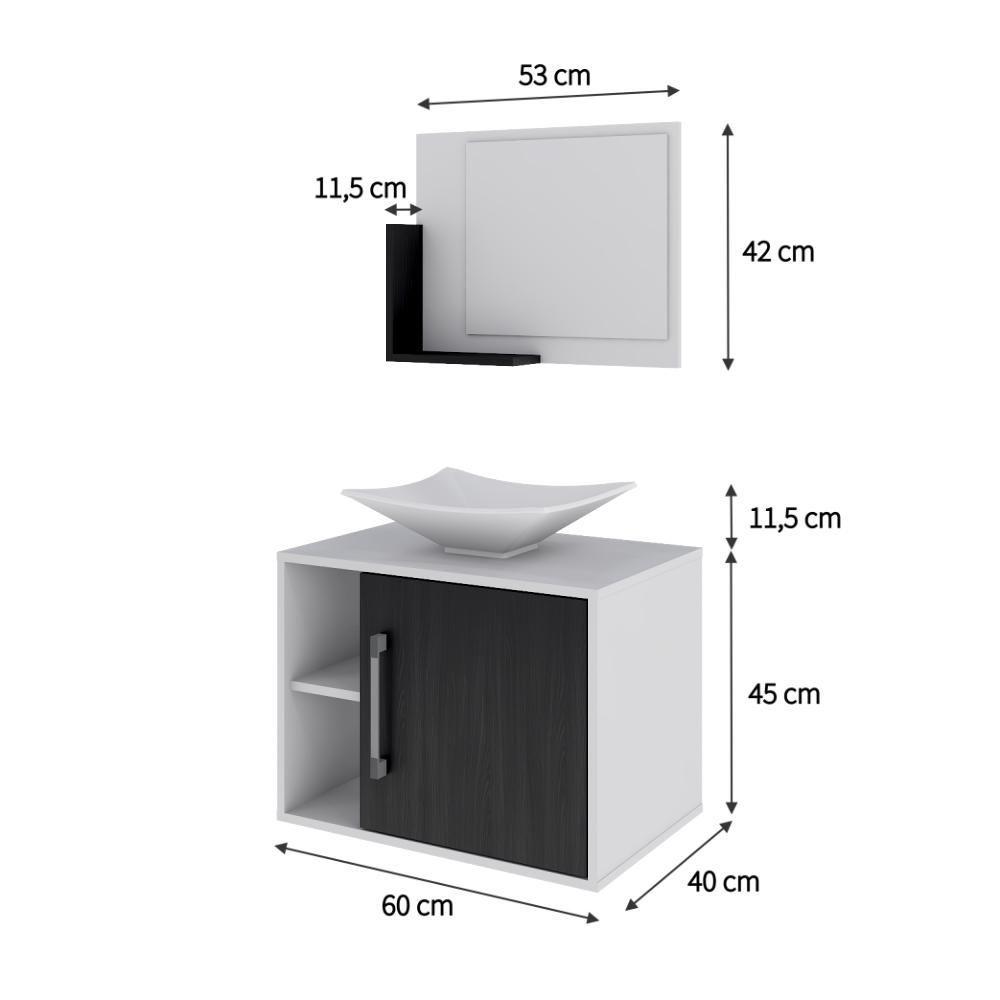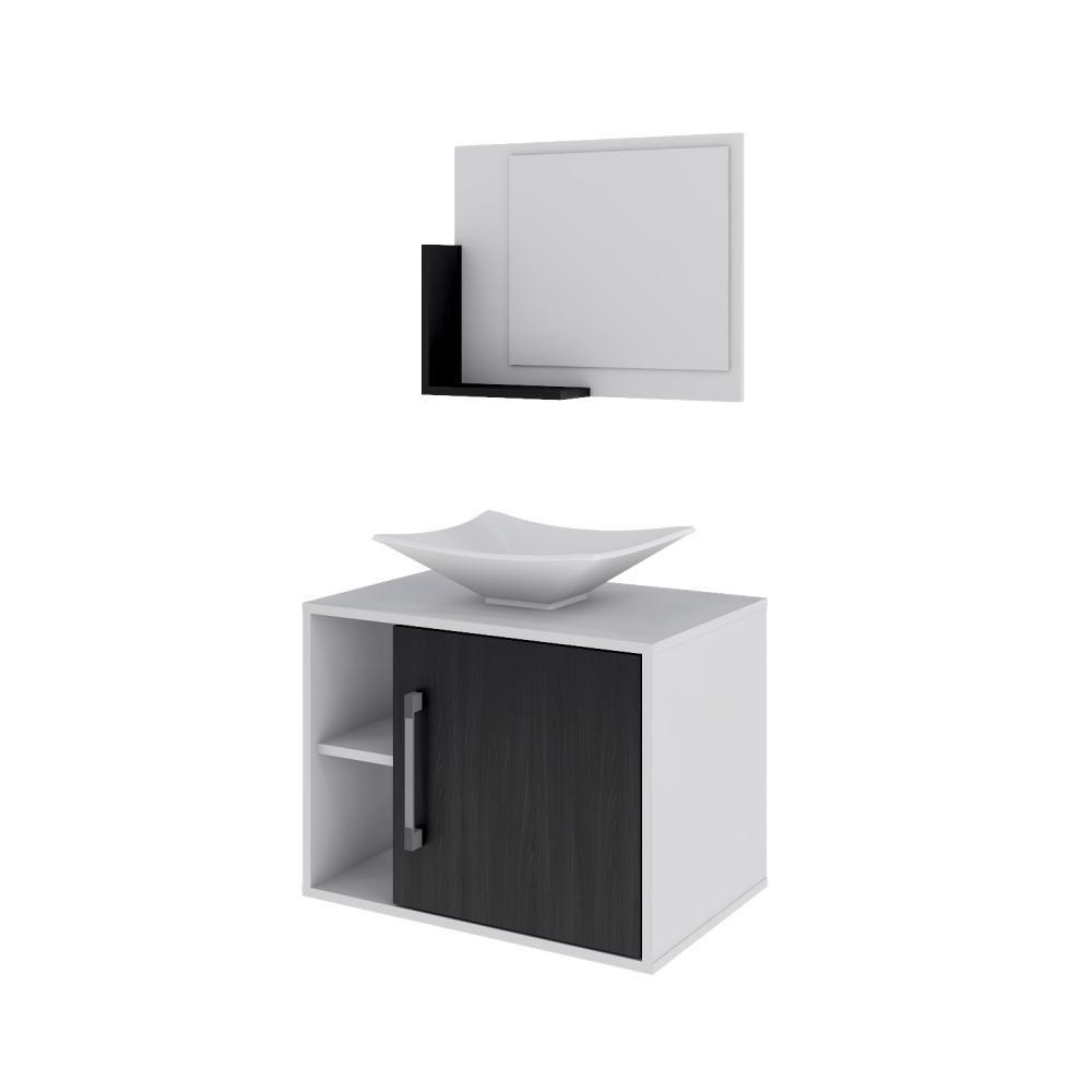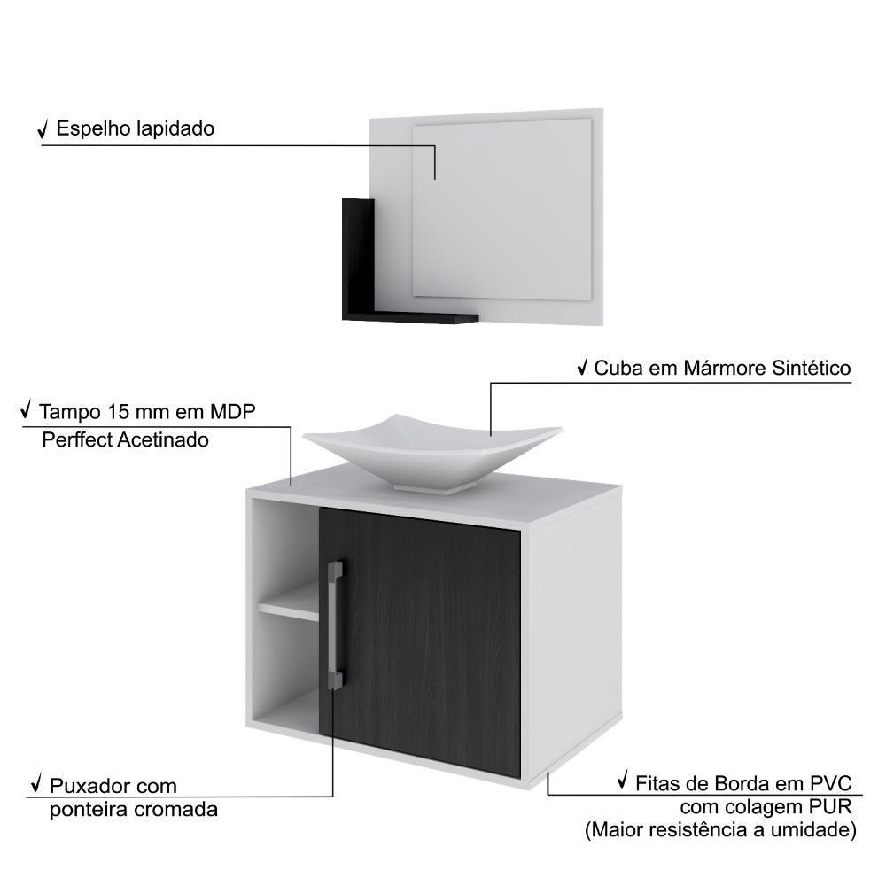 Conjunto Balcão C-cuba L38 E Espelheira Soft 600 Branco Chess C-nogal Branco Chess C-preto ônix