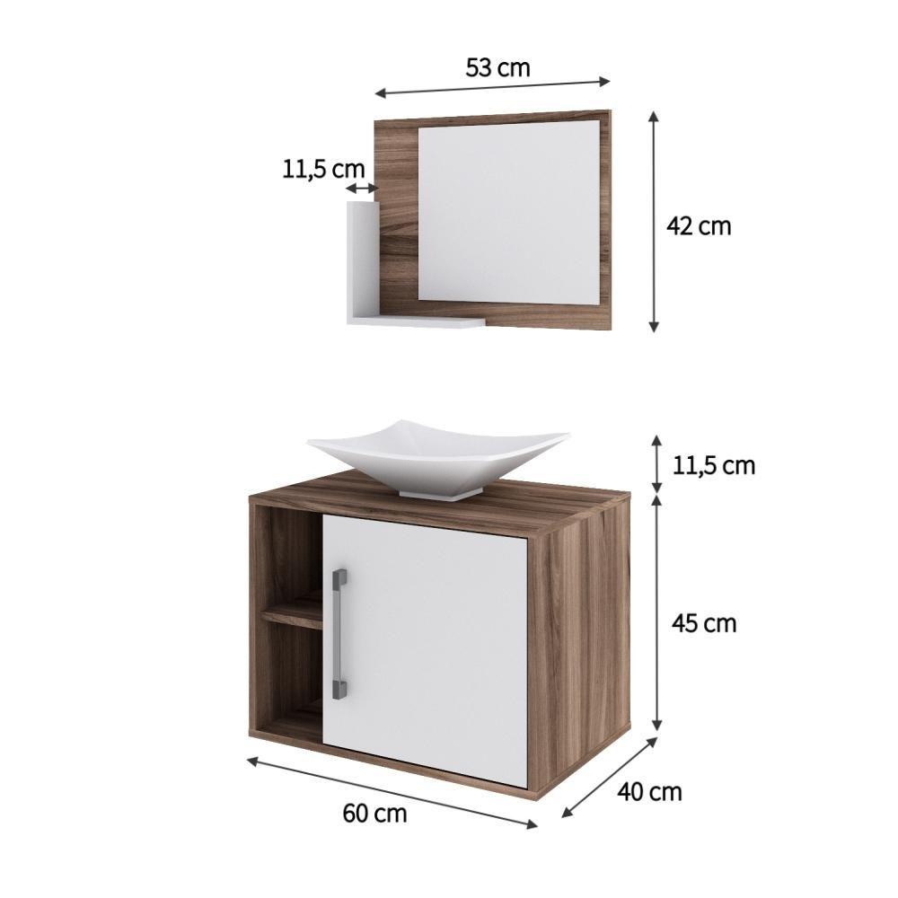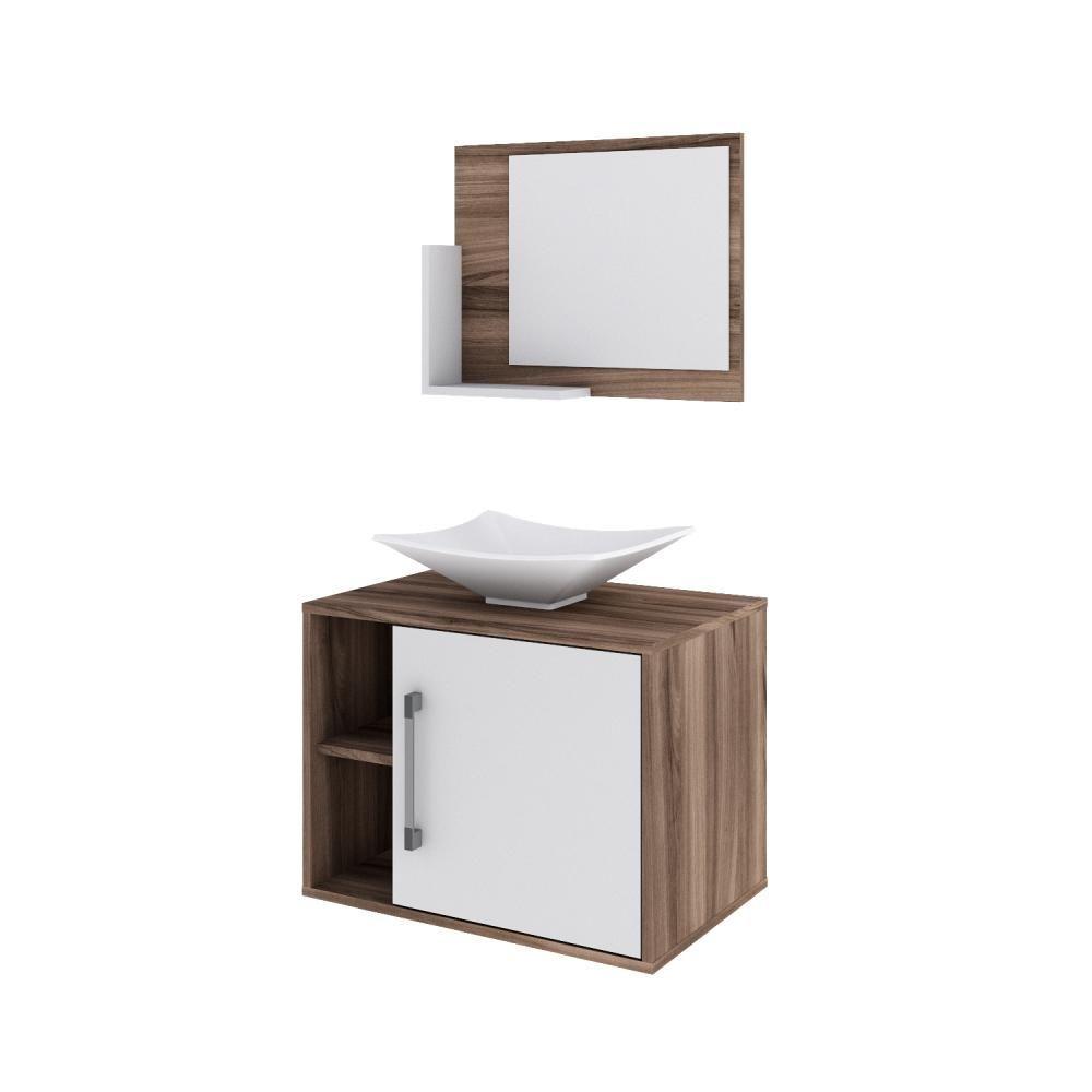Conjunto Balcão C-cuba L38 E Espelheira Soft 600 Nogal Nogal C-branco Chess