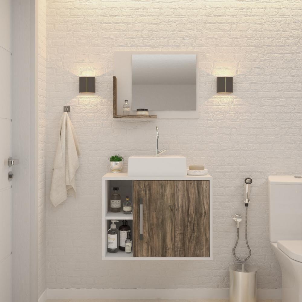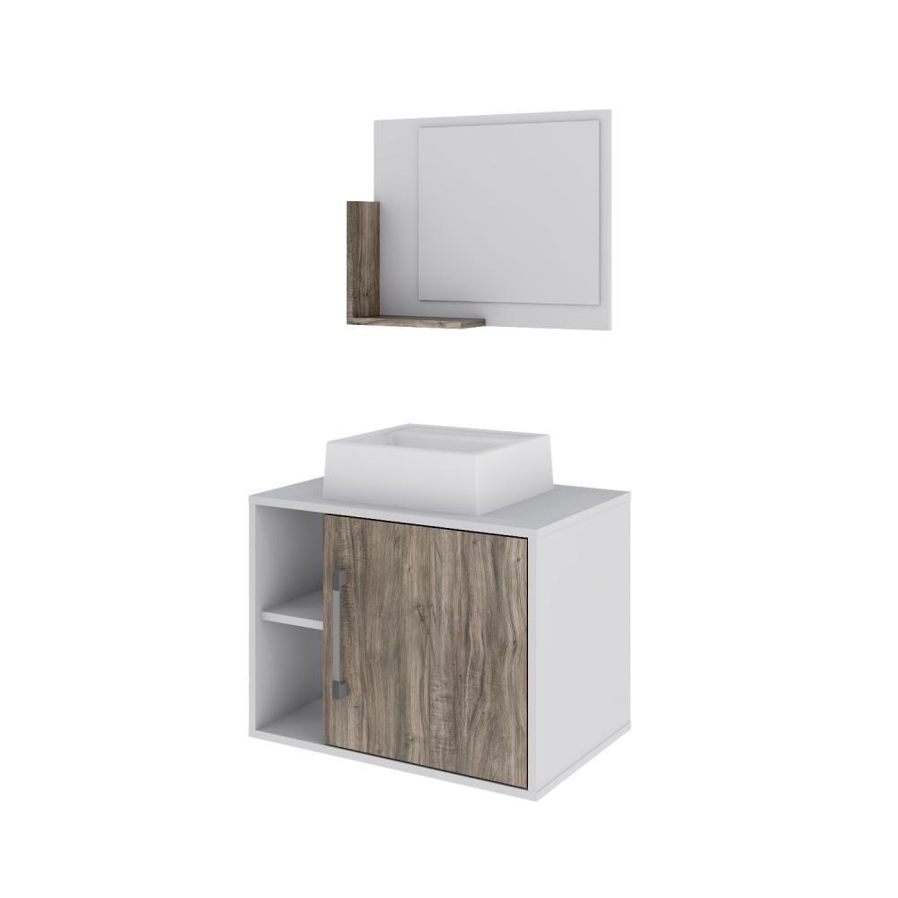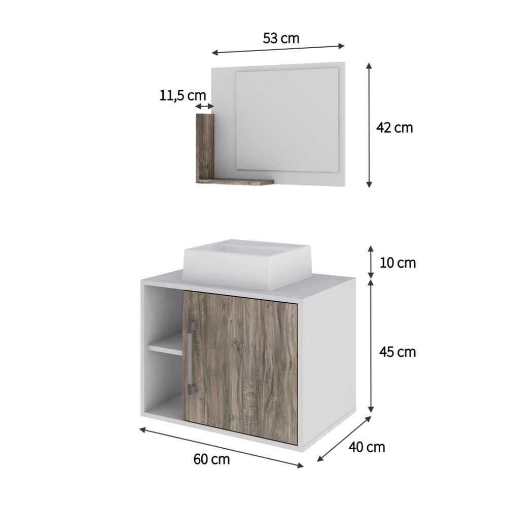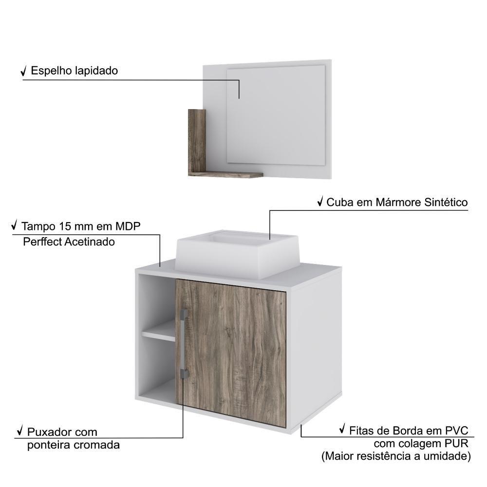 Conjunto Balcão C-cuba Q32 E Espelheira Soft 600 Branco Chess C-carvalho Branco Chess C-carvalho Dark