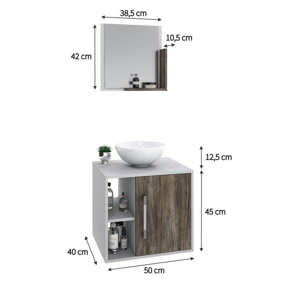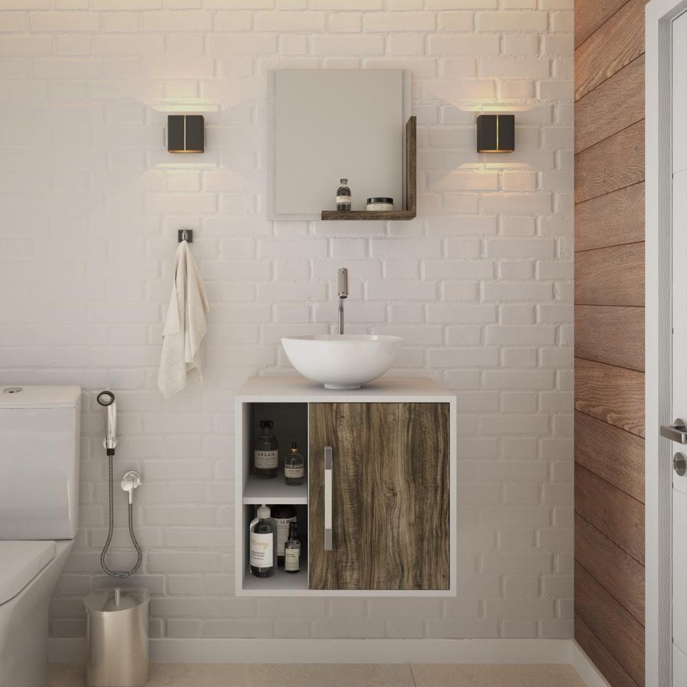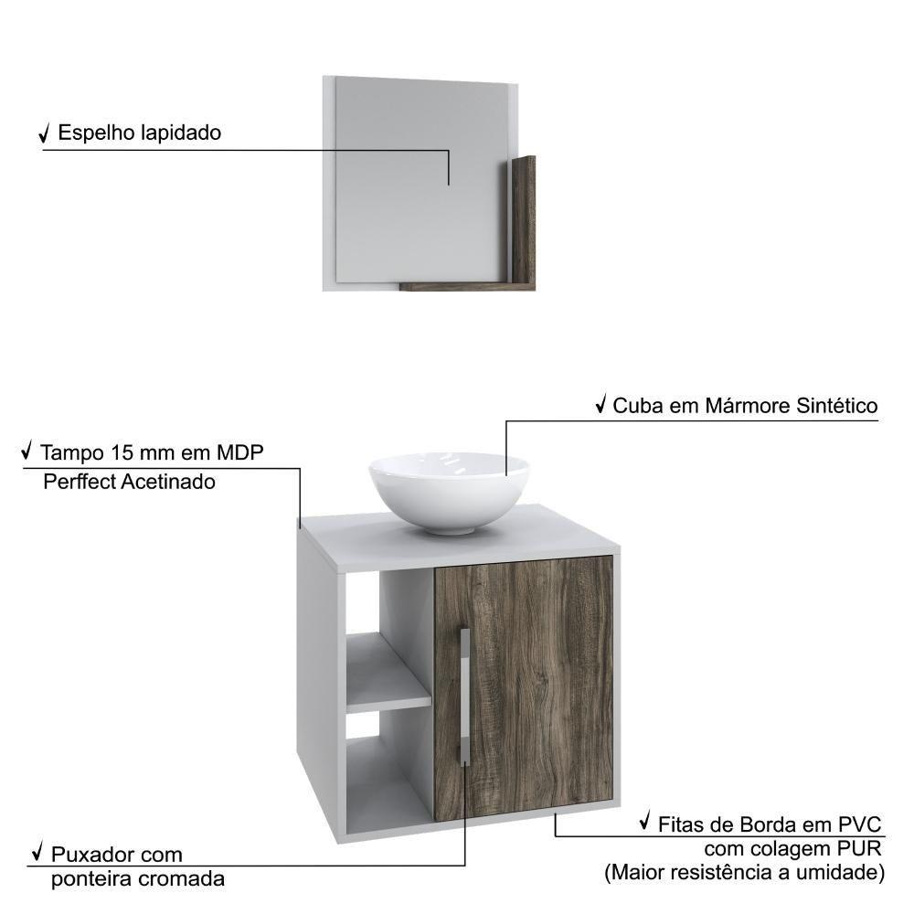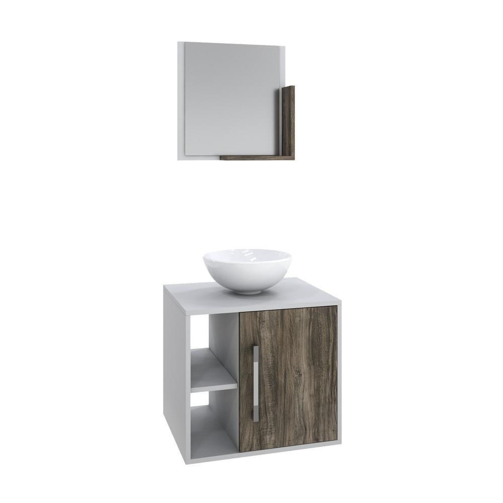 Conjunto Balcão C-cuba R30 E Espelheira Soft 500 Branco Chess C-carvalho Branco Chess C-carvalho Dark