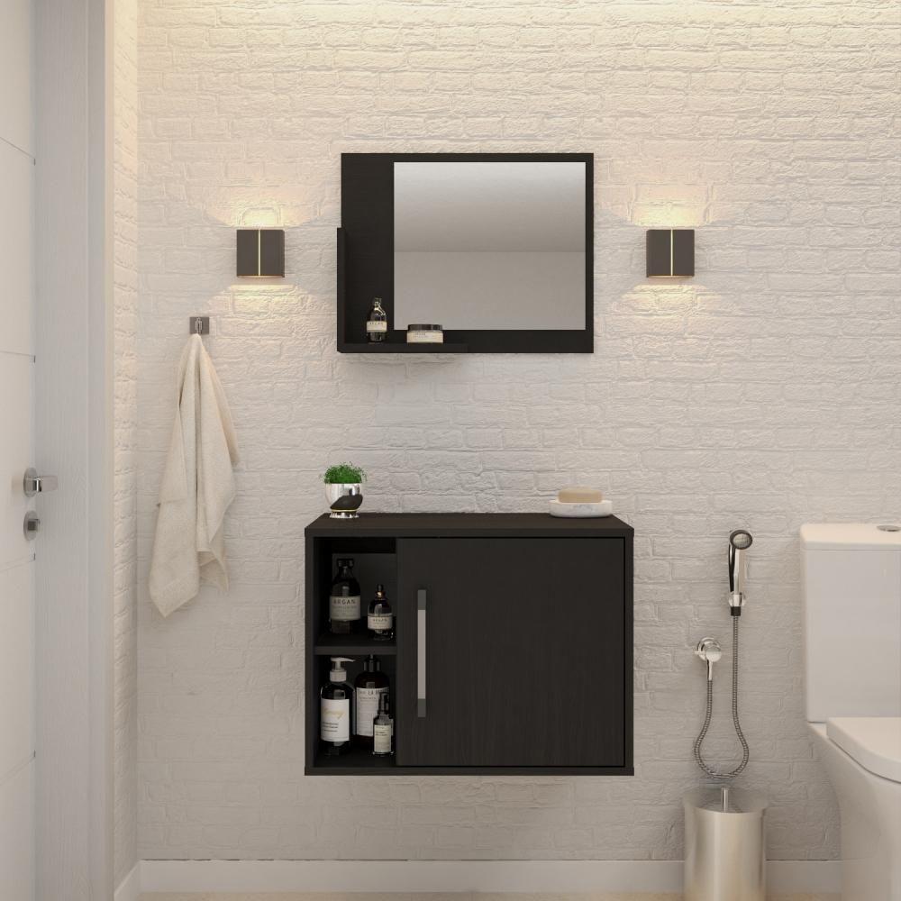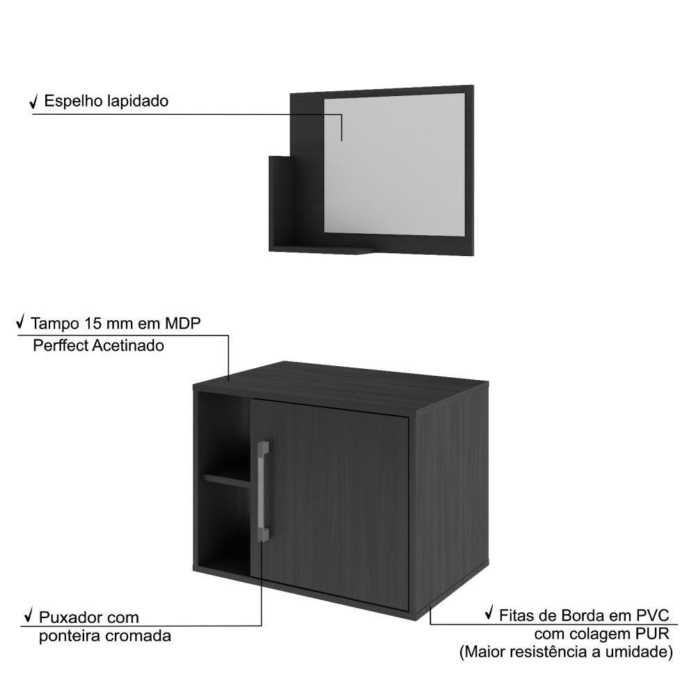 Conjunto Balcão E Espelheira Soft 600 Perffect Acetinado Preto ônix