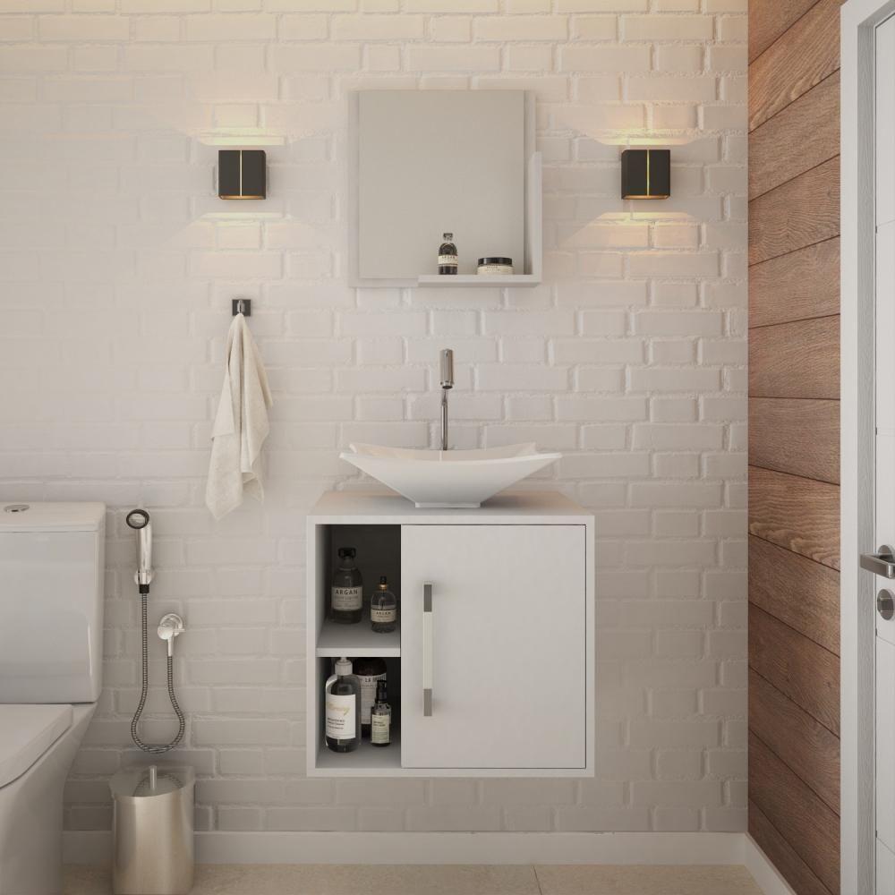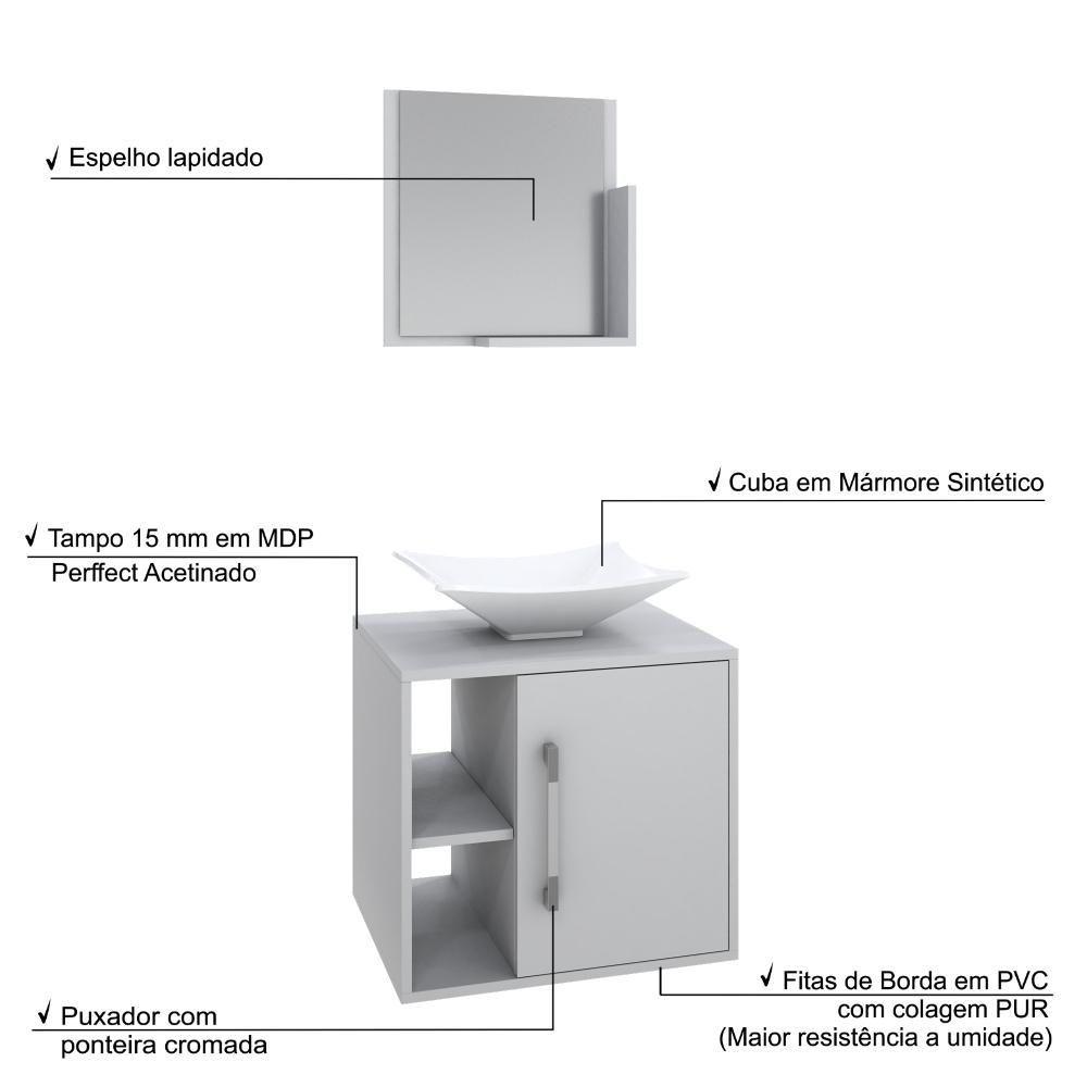 Conjunto Balcão C-cuba L38 E Espelheira Soft 500 - Branco Chess C-branco Chess Branco Chess C-branco Chess