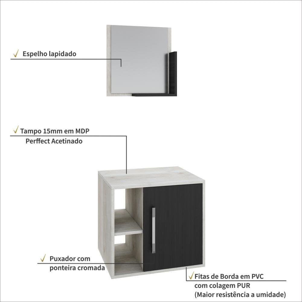 Conjunto Balcão E Espelheira Soft 500 Perffect Acetinado Snow C-preto ônix