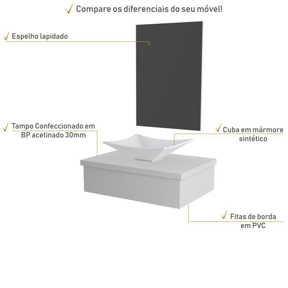 Conjunto Bancada C-cuba L38 E Espelheira Metrópole 601 Perffect Acetinado Branco Chess