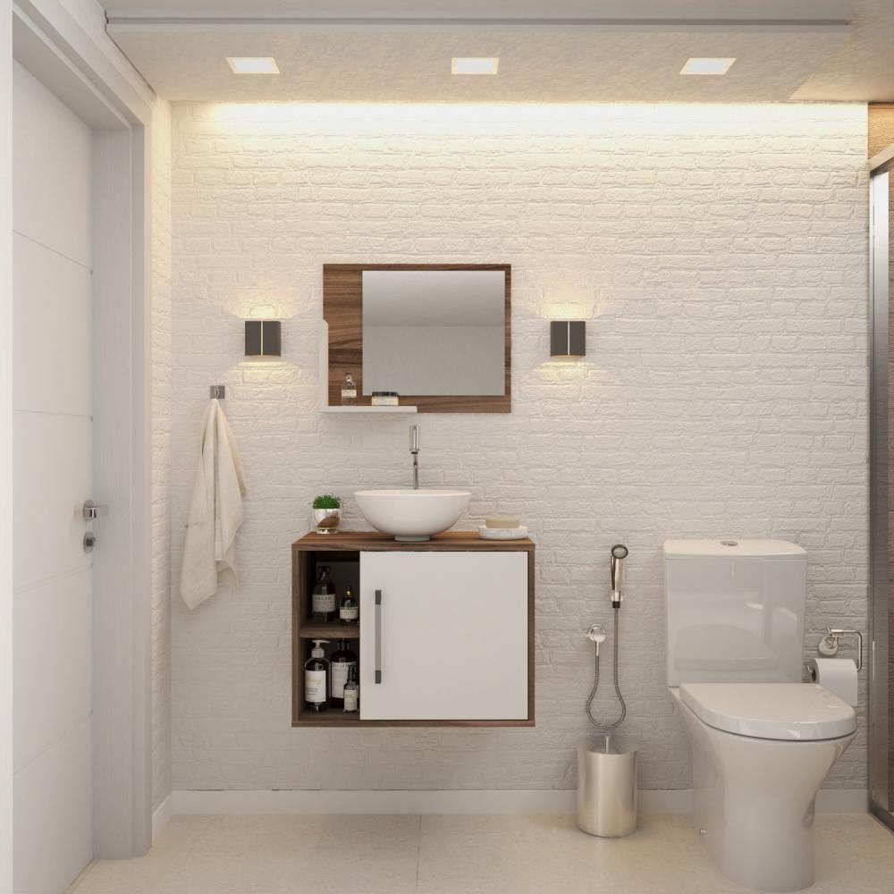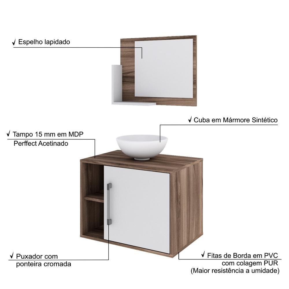 Conjunto Balcão C-cuba R30 E Espelheira Soft 600 Nogal Nogal C-branco Chess