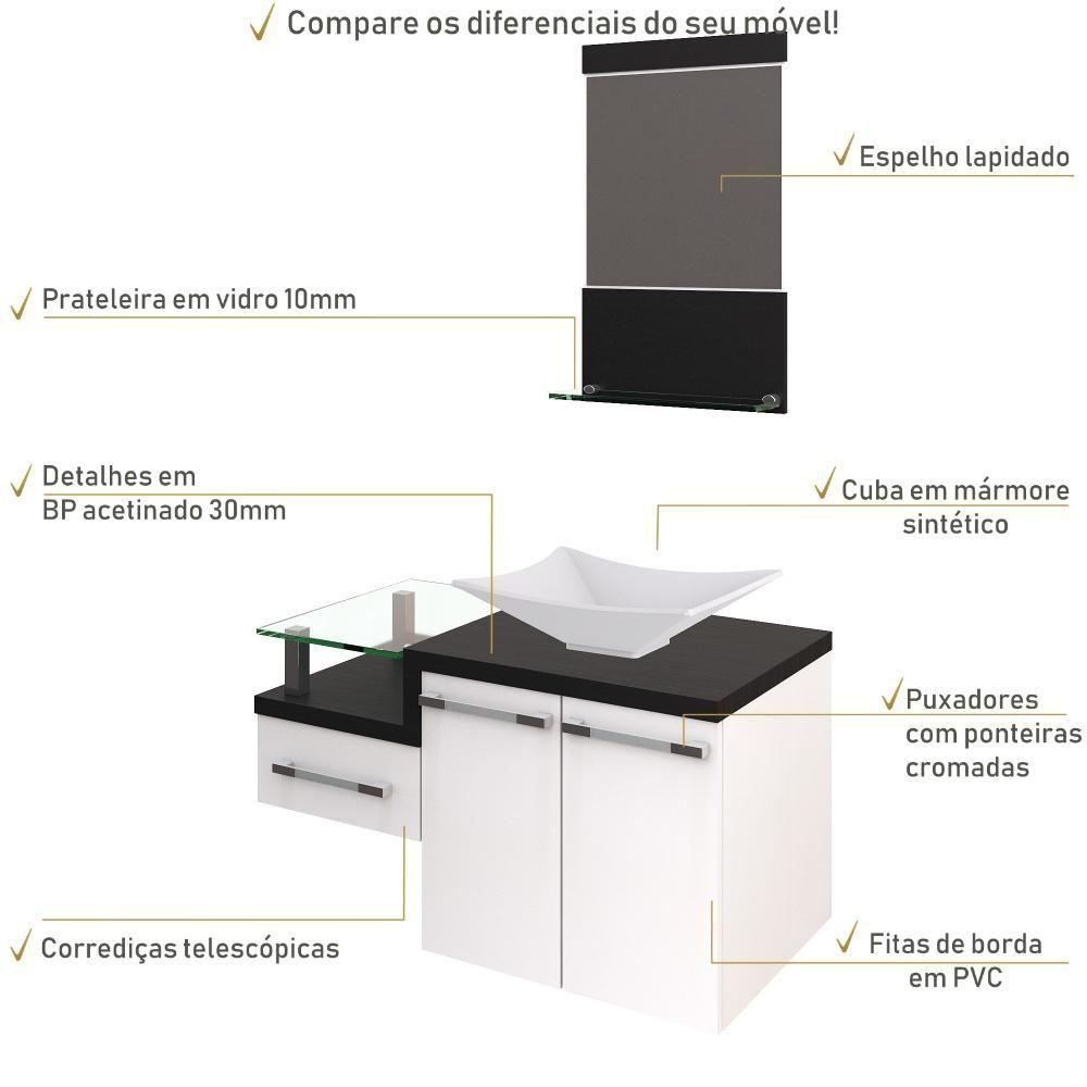 Conjunto Balcão C-cuba L38 E Espelheira Legno 831 Branco Chess C-nogal Branco Chess C-preto ônix