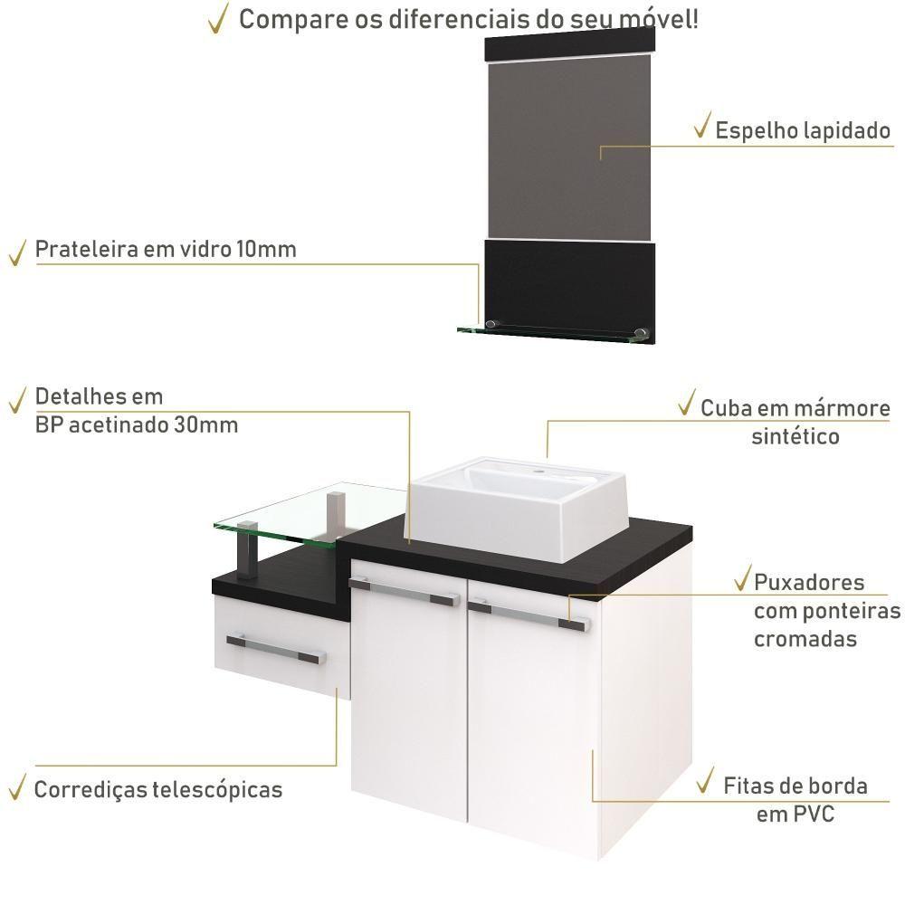 Conjunto Balcão C-cuba Q32 E Espelheira Legno 831 Branco Chess C-nogal Branco Chess C-preto ônix