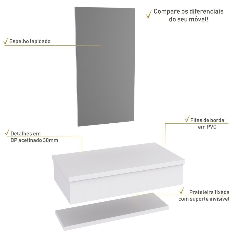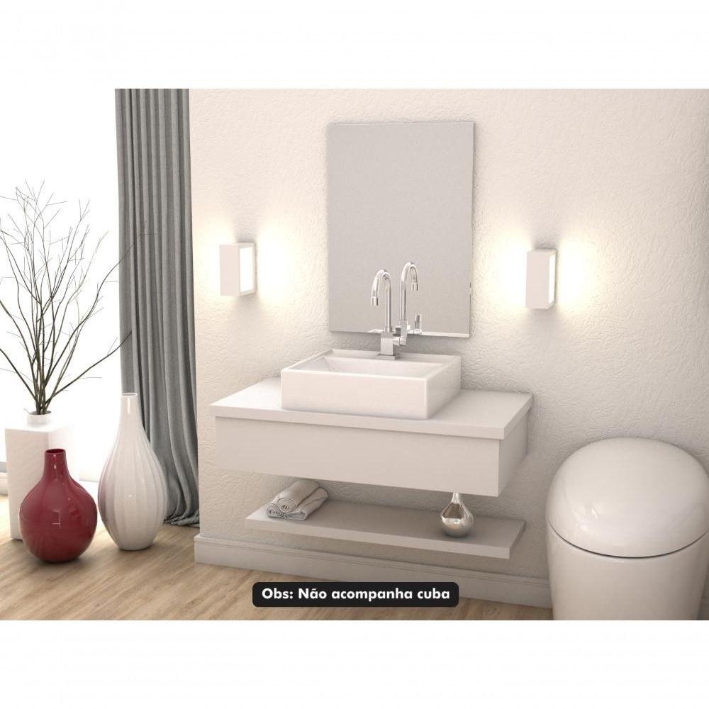 Conjunto Bancada, Prateleira E Espelheira Ktme807 Perffect Acetinado Branco Chess