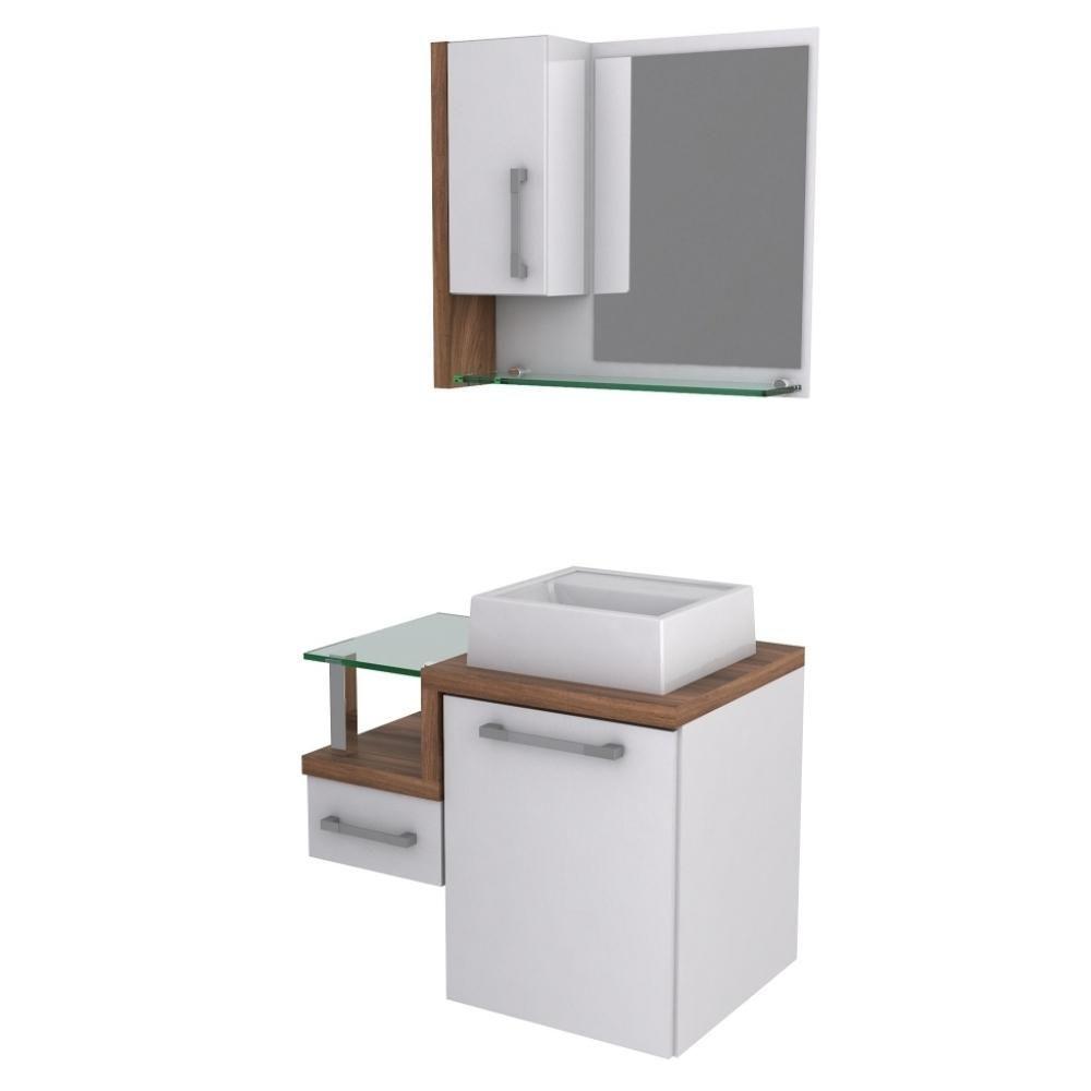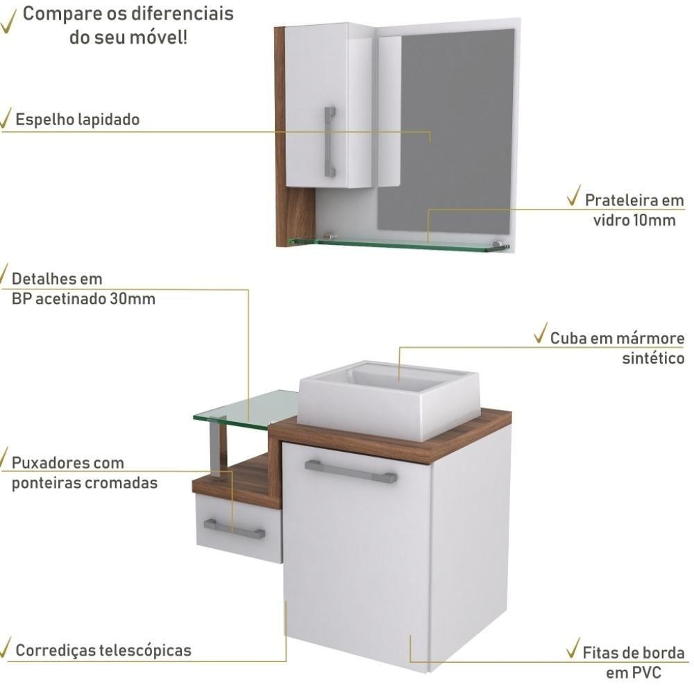 Conjunto Balcão C-cuba Q32 E Espelheira Legno 630 Branco Chess C-carvalho Dark Branco Chess C-nogal