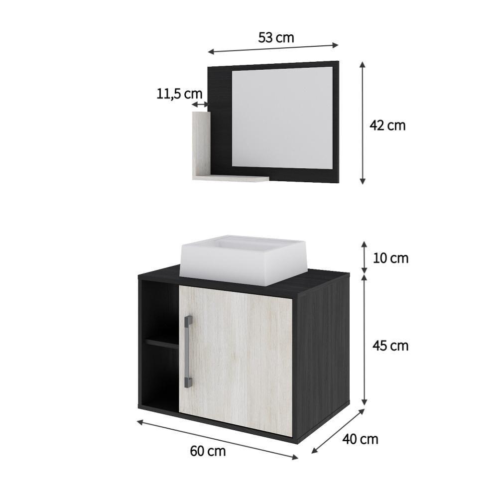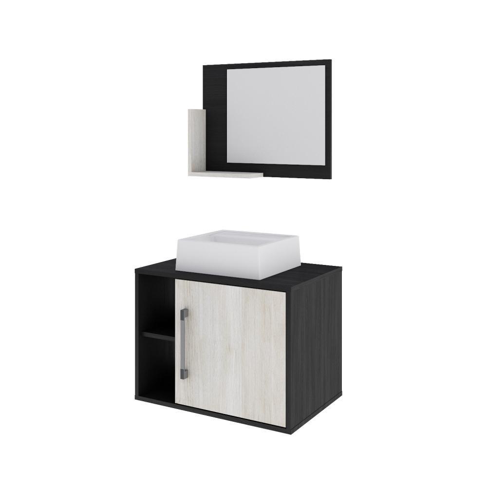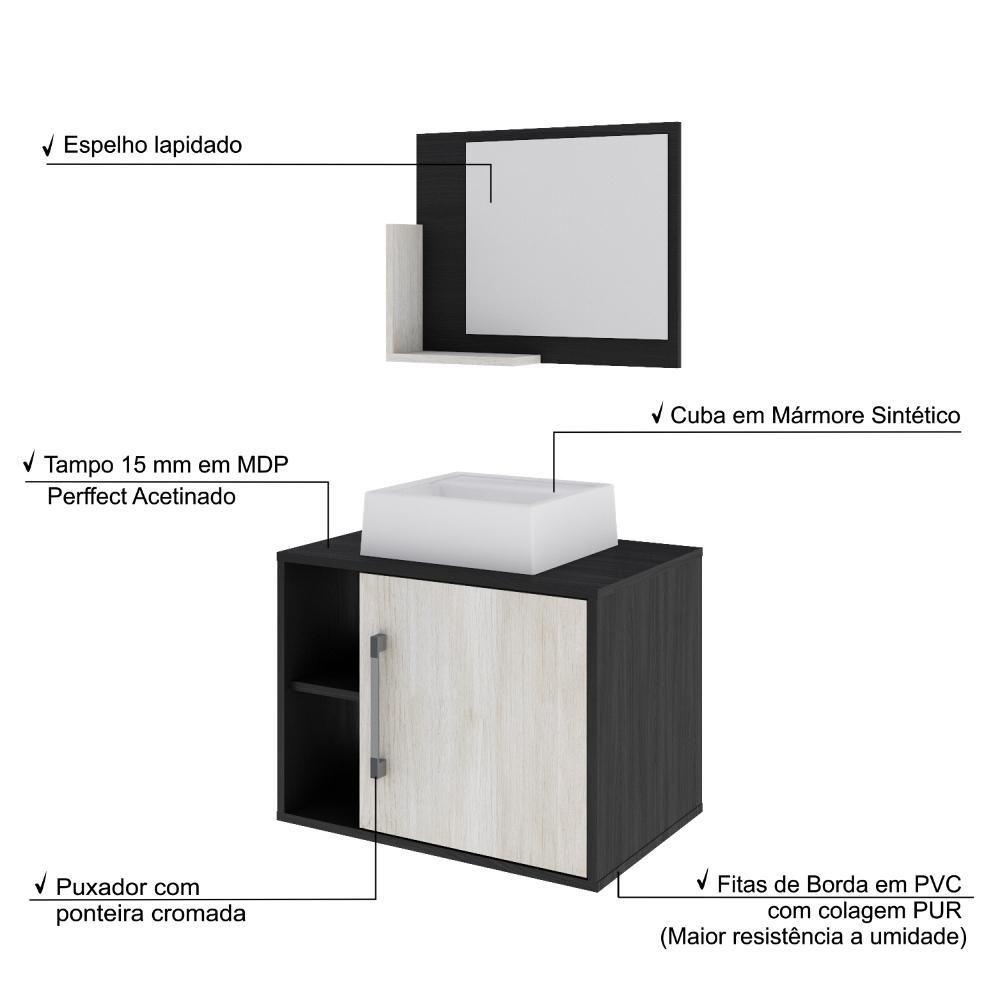 Conjunto Balcão C-cuba Q32 E Espelheira Soft 600 Preto ônix C-nogal Preto Onix C-snow