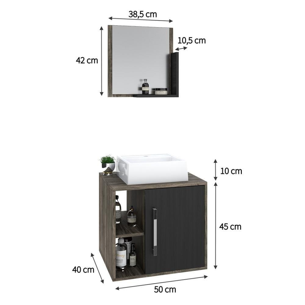 Conjunto Balcão C/cuba Q32 E Espelheira Soft 500 Carvalho Dark C/branco Chess Carvalho Dark C/preto ônixSobre o ProdutoConjunto Balcão C/Cuba Q32 e Espelheira Soft 500 Branco ChessDescrição do Produto:O Conjunto Balcão C/Cuba e Espelheira Soft 500 KTSF500 tem design compacto, perfeito para pequenos espaços, conta com uma prateleira lateral e uma cuba de apoio, além da linha Basic traz móveis funcionais e de design tradicional, aliando simplicidade e estilo para seu ambiente de banheiro!Itens Inclusos:1 Conjunto Balcão C/Cuba e EspelheiraDimensões dos Produtos:Gabinete: 50 x 40 x 45 cmEspelheira: 40 x 10 x 42 cmCuba 33 x 30 x 10 cmInformações Logísticas (Comp. X Prof. X Alt.) 54 x 42 x 28 cm - Peso: 19,48 KgPeso Total: 19,48 KgObservações:Não acompanha acessórios decorativos. Imagens meramente ilustrativas.Informações Técnicas / Características:- Cor do Produto: Branco Chess- Cor do Predominante: Branco- Marca: Compace- Modelo: KTSF500- Linha: Basic- Material: Mdp - Acabamento: Perffect Acetinado- Escala de Brilho: Fosco- Fita de Borda: Pvc- Possui Portas: 1- Tipo de Porta: Bater- Tipo da Dobradiça: Metálica - Material do Puxador: Abs- Possui Prateleiras: 2- Peso Máximo por Prateleira: 1 kg Espelheira / 3 kg Balcão- Possui Pés: Não, suspenso - Possui Espelho: Sim- Possui Vidro: Sim- Acompanha Cuba / Lavatório: Sim, de Mármore Sintético- Furação para Cuba / Lavatório: Não- Tipo da Cuba: Apoio- Cor da Cuba: Branca- Suporta Até (kg): 16 kg - Peso Lí.: 18,25Kg- Recomendações de Uso, Manutenção e Limpeza: Para a limpeza, utilize flanela seca ou pano macio levemente umedecido em água. Utilize um pano seco em seguida. Evite com produtos químicos (solventes, thinner, acetona, etc) e não utilize nenhum tipo de esponja de aço.- Necessita de Montagem: Sim / Acompanha Manual de Montagem- Complexidade da Montagem: Média: pode ser montado por mais de uma pessoa e/ou necessite de maior conhecimento para montagem.- Garantia: 6 meses Material: Mdp | Acabamento: Perffect Acetinado | Escala de Brilho: Fosco | Fita de Borda: Pvc | Possui Portas: 1 | Tipo de Porta: Bater | Tipo da Dobradiça: Metálica | Tipo de Produto: Gabinete de Banheiro | Fabricante: Compace | Limite de unidades por venda: É possível comprar até 1 unidade por venda. | Quantidade máxima de pedido: 1 | Comprimento: 50 | Largura: 40 | Altura: 45 | Profundidade: 45 | Preço trabelado: | Componentes incluídos: | Principais Características do Produto 0: | Principais Características do Produto 2: | Baterias são necessárias?: | Palavras-chave de Pesquisa: | Certificação de teste externa: | Cor: | Principais Características do Produto 1: | Dimensões do item P x L x A: | Peso do item: | Is Fragile: | da peça: | Exige montagem: | de caixas: | do modelo: | Quantidade de itens: Cor: Carvalho Dark C/Preto Ônix