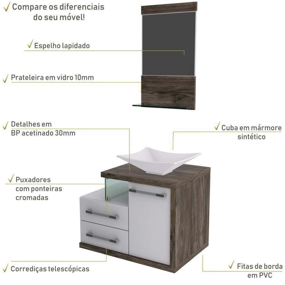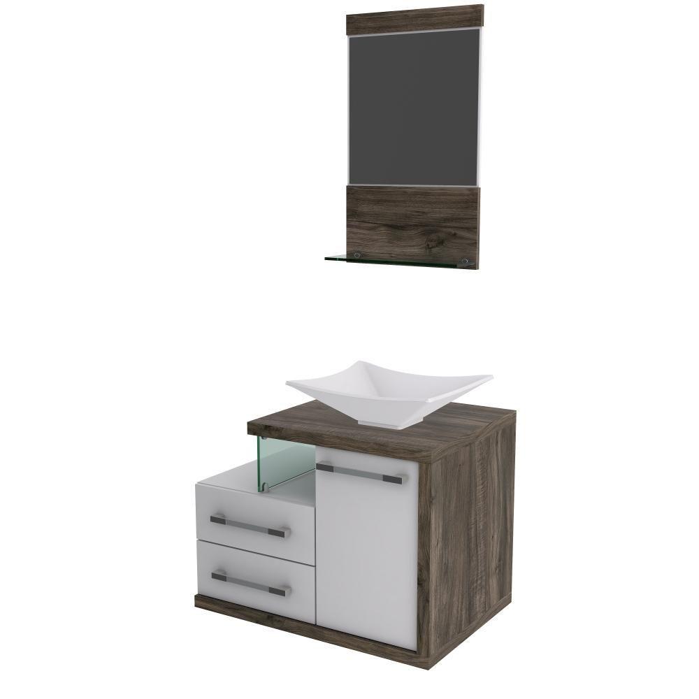 Conjunto Balcão C-cuba L38 E Espelheira Legno 651 Branco Chess C-carvalho Branco Chess C-carvalho Dark