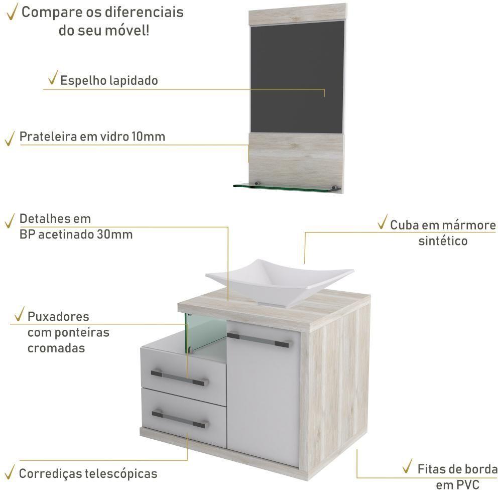 Conjunto Balcão C-cuba L38 E Espelheira Legno 651 Branco Chess C-preto ônix Branco Chess C-snow