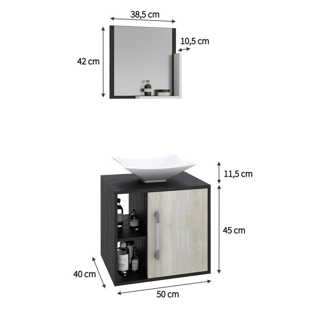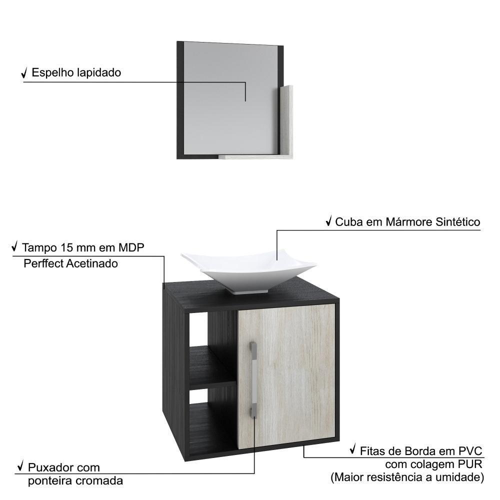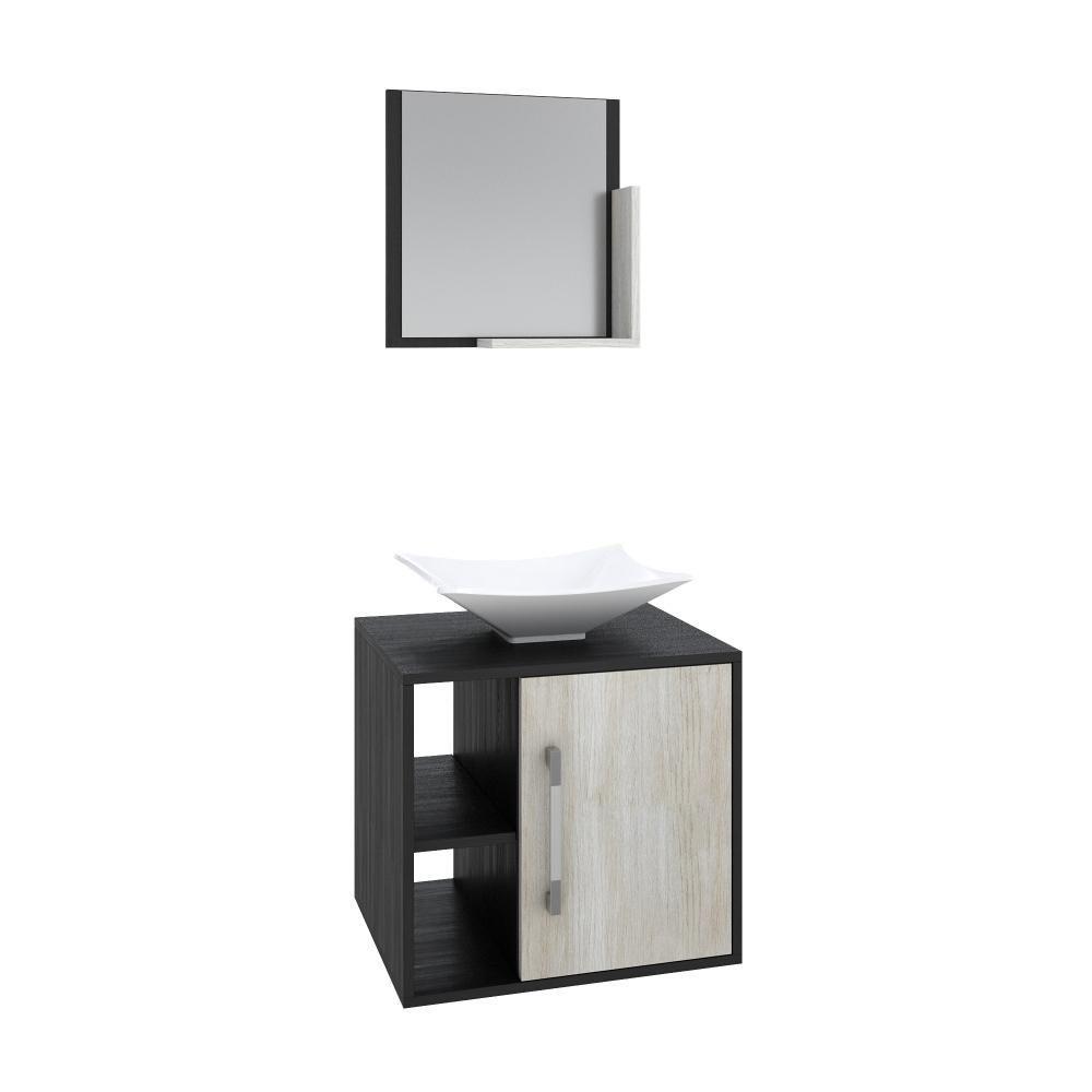Conjunto Balcão C-cuba L38 E Espelheira Soft 500 Preto ônix C-nogal Preto Onix C-snow