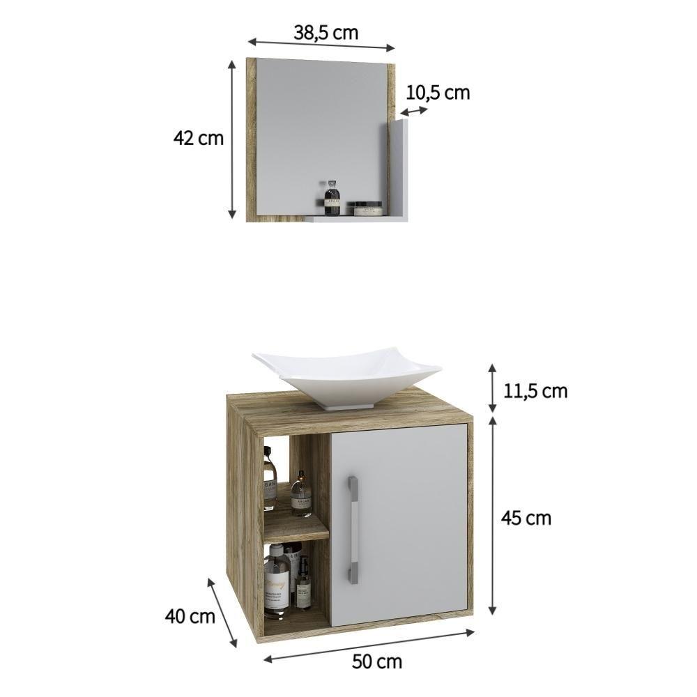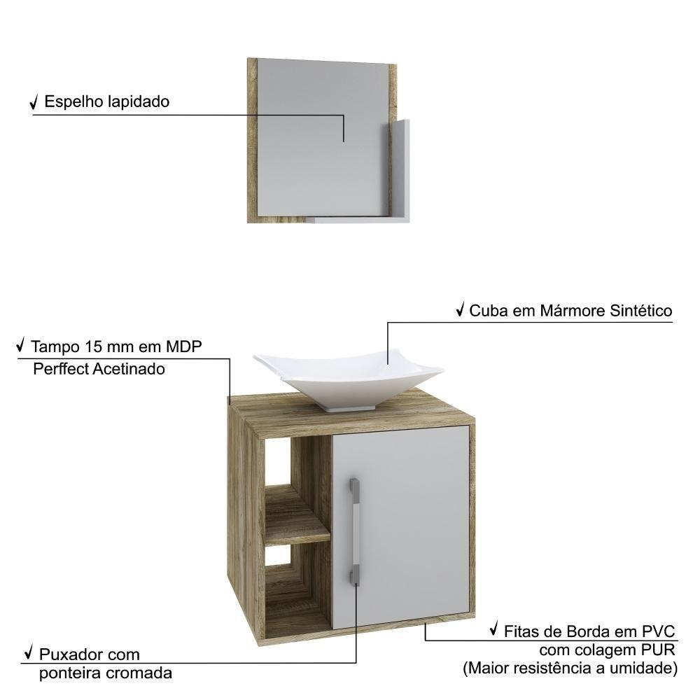 Conjunto Balcão C-cuba L38 E Espelheira Soft 500 Carvalho Carvalho C-branco Chess