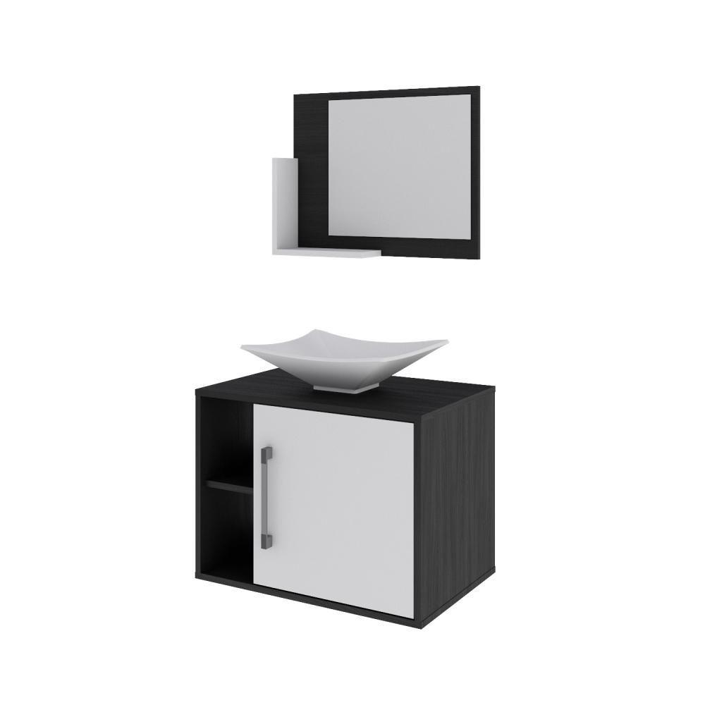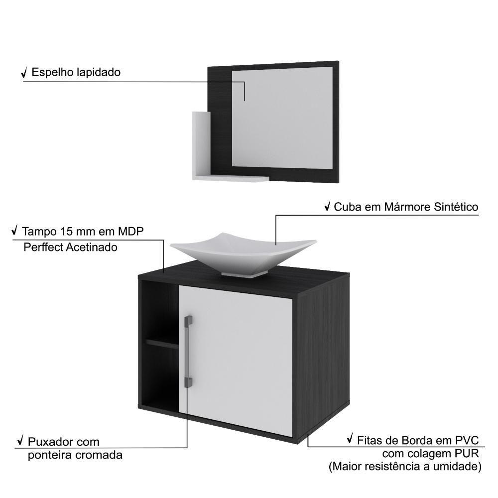 Conjunto Balcão C-cuba L38 E Espelheira Soft 600 Preto ônix Preto ônix C-branco Chess