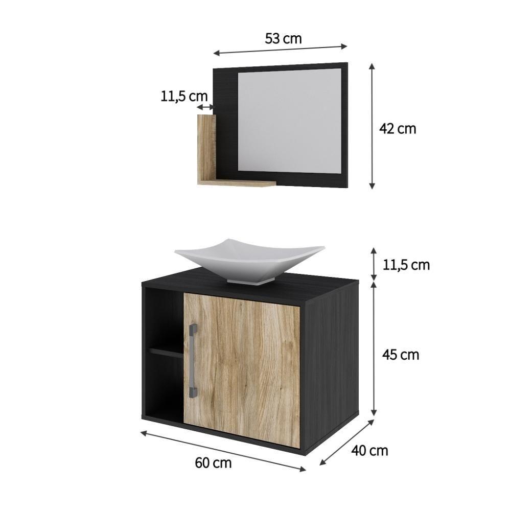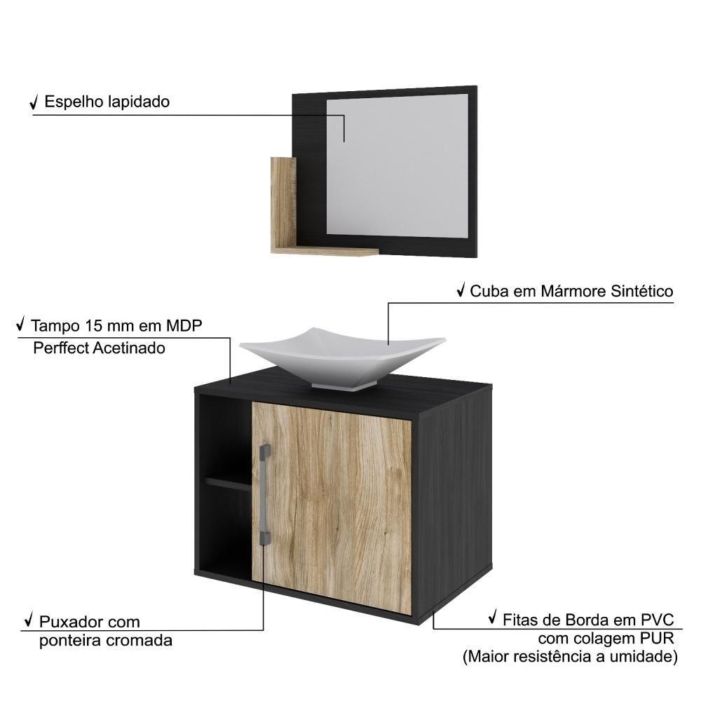 Conjunto Balcão C-cuba L38 E Espelheira Soft 600 Preto ônix C-branco Chess Preto ônix C-carvalho