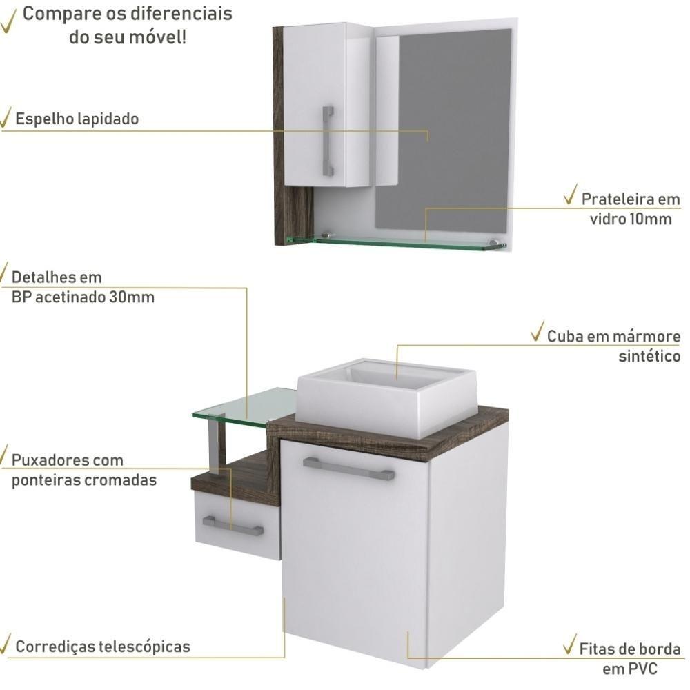 Conjunto Balcão C-cuba Q32 E Espelheira Legno 630 Branco Chess C-carvalho Branco Chess C-carvalho Dark