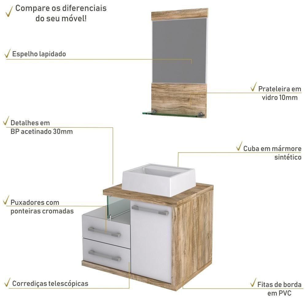 Conjunto Balcão C-cuba Q32 E Espelheira Legno 651 Branco Chess C-branco Chess Branco Chess C-carvalho