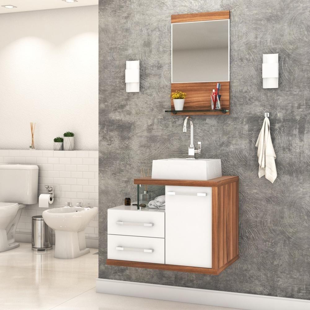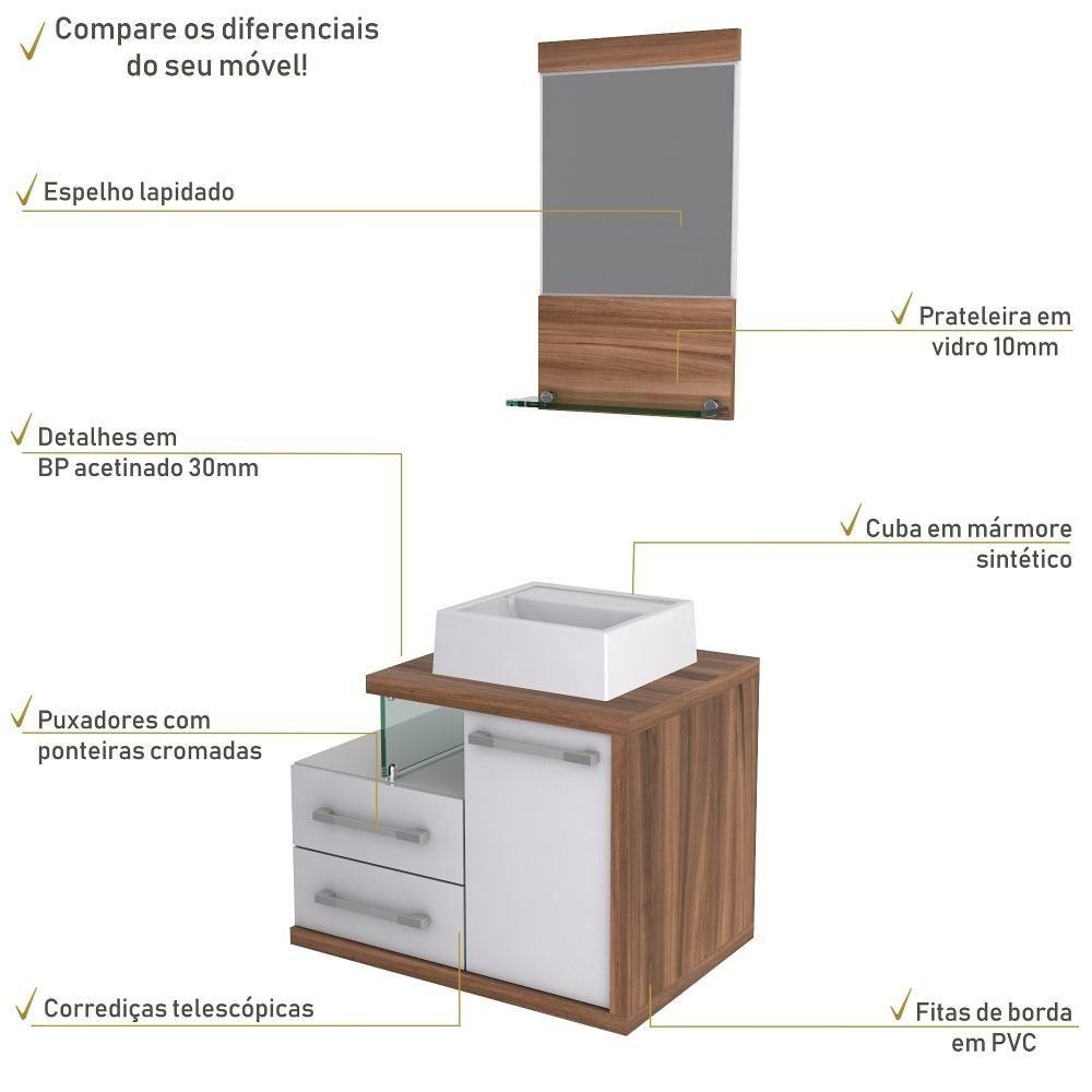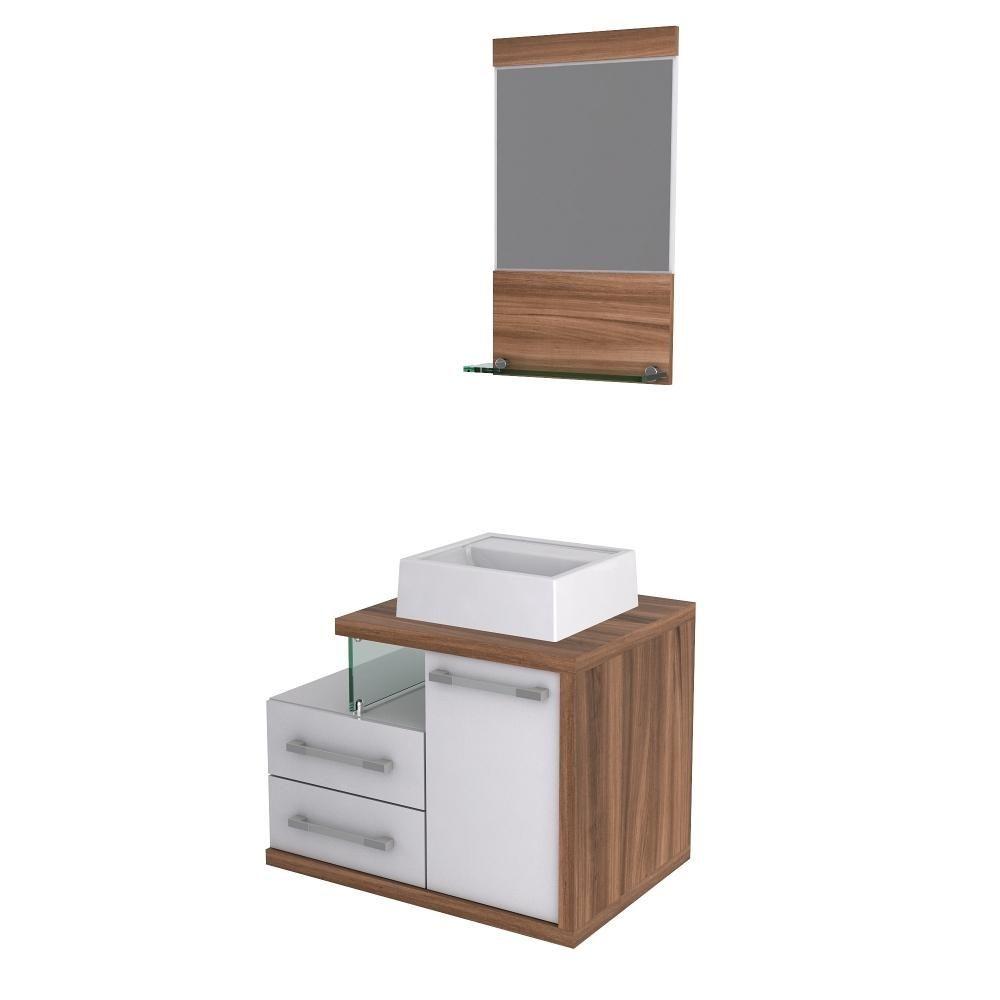 Conjunto Balcão C-cuba Q32 E Espelheira Legno 651 Branco Chess C-carvalho Dark Branco Chess C-nogal