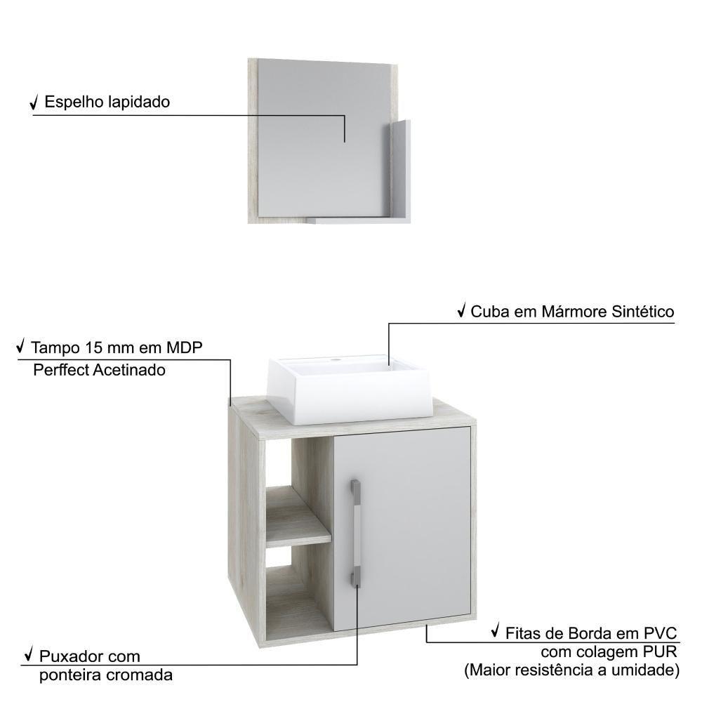 Conjunto Balcão C-cuba Q32 E Espelheira Soft 500 Snow Snow C-branco Chess