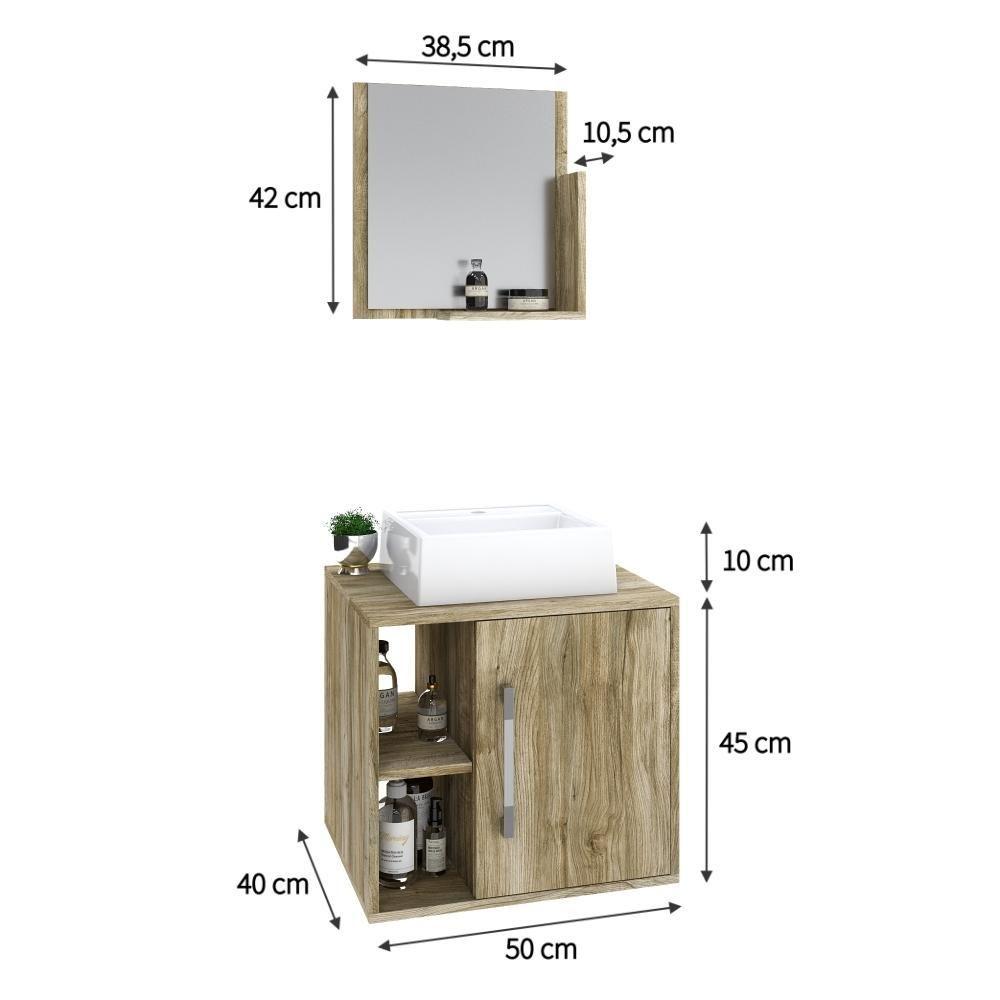 Conjunto Balcão C/cuba Q32 E Espelheira Soft 500 Preto Onix C/snow CarvalhoSobre o ProdutoConjunto Balcão C/Cuba Q32 e Espelheira Soft 500 Branco ChessDescrição do Produto:O Conjunto Balcão C/Cuba e Espelheira Soft 500 KTSF500 tem design compacto, perfeito para pequenos espaços, conta com uma prateleira lateral e uma cuba de apoio, além da linha Basic traz móveis funcionais e de design tradicional, aliando simplicidade e estilo para seu ambiente de banheiro!Itens Inclusos:1 Conjunto Balcão C/Cuba e EspelheiraDimensões dos Produtos:Gabinete: 50 x 40 x 45 cmEspelheira: 40 x 10 x 42 cmCuba 33 x 30 x 10 cmInformações Logísticas (Comp. X Prof. X Alt.) 54 x 42 x 28 cm - Peso: 19,48 KgPeso Total: 19,48 KgObservações:Não acompanha acessórios decorativos. Imagens meramente ilustrativas.Informações Técnicas / Características:- Cor do Produto: Branco Chess- Cor do Predominante: Branco- Marca: Compace- Modelo: KTSF500- Linha: Basic- Material: Mdp - Acabamento: Perffect Acetinado- Escala de Brilho: Fosco- Fita de Borda: Pvc- Possui Portas: 1- Tipo de Porta: Bater- Tipo da Dobradiça: Metálica - Material do Puxador: Abs- Possui Prateleiras: 2- Peso Máximo por Prateleira: 1 kg Espelheira / 3 kg Balcão- Possui Pés: Não, suspenso - Possui Espelho: Sim- Possui Vidro: Sim- Acompanha Cuba / Lavatório: Sim, de Mármore Sintético- Furação para Cuba / Lavatório: Não- Tipo da Cuba: Apoio- Cor da Cuba: Branca- Suporta Até (kg): 16 kg - Peso Lí.: 18,25Kg- Recomendações de Uso, Manutenção e Limpeza: Para a limpeza, utilize flanela seca ou pano macio levemente umedecido em água. Utilize um pano seco em seguida. Evite com produtos químicos (solventes, thinner, acetona, etc) e não utilize nenhum tipo de esponja de aço.- Necessita de Montagem: Sim / Acompanha Manual de Montagem- Complexidade da Montagem: Média: pode ser montado por mais de uma pessoa e/ou necessite de maior conhecimento para montagem.- Garantia: 6 meses Material: Mdp | Acabamento: Perffect Acetinado | Escala de Brilho: Fosco | Fita de Borda: Pvc | Possui Portas: 1 | Tipo de Porta: Bater | Tipo da Dobradiça: Metálica | Tipo de Produto: Gabinete de Banheiro | Fabricante: Compace | Limite de unidades por venda: É possível comprar até 1 unidade por venda. | Quantidade máxima de pedido: 1 | Comprimento: 50 | Largura: 40 | Altura: 45 | Profundidade: 45 | Preço trabelado: | Componentes incluídos: | Principais Características do Produto 0: | Principais Características do Produto 2: | Baterias são necessárias?: | Palavras-chave de Pesquisa: | Certificação de teste externa: | Cor: | Principais Características do Produto 1: | Dimensões do item P x L x A: | Peso do item: | Is Fragile: | da peça: | Exige montagem: | de caixas: | do modelo: | Quantidade de itens: Cor: Carvalho