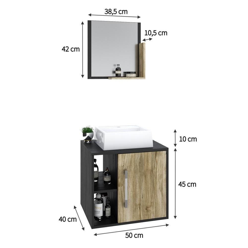 Conjunto Balcão C/cuba Q32 E Espelheira Soft 500 Preto ônix C/branco Chess Preto ônix C/carvalhoSobre o ProdutoConjunto Balcão C/Cuba Q32 e Espelheira Soft 500 Branco ChessDescrição do Produto:O Conjunto Balcão C/Cuba e Espelheira Soft 500 KTSF500 tem design compacto, perfeito para pequenos espaços, conta com uma prateleira lateral e uma cuba de apoio, além da linha Basic traz móveis funcionais e de design tradicional, aliando simplicidade e estilo para seu ambiente de banheiro!Itens Inclusos:1 Conjunto Balcão C/Cuba e EspelheiraDimensões dos Produtos:Gabinete: 50 x 40 x 45 cmEspelheira: 40 x 10 x 42 cmCuba 33 x 30 x 10 cmInformações Logísticas (Comp. X Prof. X Alt.) 54 x 42 x 28 cm - Peso: 19,48 KgPeso Total: 19,48 KgObservações:Não acompanha acessórios decorativos. Imagens meramente ilustrativas.Informações Técnicas / Características:- Cor do Produto: Branco Chess- Cor do Predominante: Branco- Marca: Compace- Modelo: KTSF500- Linha: Basic- Material: Mdp - Acabamento: Perffect Acetinado- Escala de Brilho: Fosco- Fita de Borda: Pvc- Possui Portas: 1- Tipo de Porta: Bater- Tipo da Dobradiça: Metálica - Material do Puxador: Abs- Possui Prateleiras: 2- Peso Máximo por Prateleira: 1 kg Espelheira / 3 kg Balcão- Possui Pés: Não, suspenso - Possui Espelho: Sim- Possui Vidro: Sim- Acompanha Cuba / Lavatório: Sim, de Mármore Sintético- Furação para Cuba / Lavatório: Não- Tipo da Cuba: Apoio- Cor da Cuba: Branca- Suporta Até (kg): 16 kg - Peso Lí.: 18,25Kg- Recomendações de Uso, Manutenção e Limpeza: Para a limpeza, utilize flanela seca ou pano macio levemente umedecido em água. Utilize um pano seco em seguida. Evite com produtos químicos (solventes, thinner, acetona, etc) e não utilize nenhum tipo de esponja de aço.- Necessita de Montagem: Sim / Acompanha Manual de Montagem- Complexidade da Montagem: Média: pode ser montado por mais de uma pessoa e/ou necessite de maior conhecimento para montagem.- Garantia: 6 meses Material: Mdp | Acabamento: Perffect Acetinado | Escala de Brilho: Fosco | Fita de Borda: Pvc | Possui Portas: 1 | Tipo de Porta: Bater | Tipo da Dobradiça: Metálica | Tipo de Produto: Gabinete de Banheiro | Fabricante: Compace | Limite de unidades por venda: É possível comprar até 1 unidade por venda. | Quantidade máxima de pedido: 1 | Comprimento: 50 | Largura: 40 | Altura: 45 | Profundidade: 45 | Preço trabelado: | Componentes incluídos: | Principais Características do Produto 0: | Principais Características do Produto 2: | Baterias são necessárias?: | Palavras-chave de Pesquisa: | Certificação de teste externa: | Cor: | Principais Características do Produto 1: | Dimensões do item P x L x A: | Peso do item: | Is Fragile: | da peça: | Exige montagem: | de caixas: | do modelo: | Quantidade de itens: Cor: Preto Ônix C/Carvalho