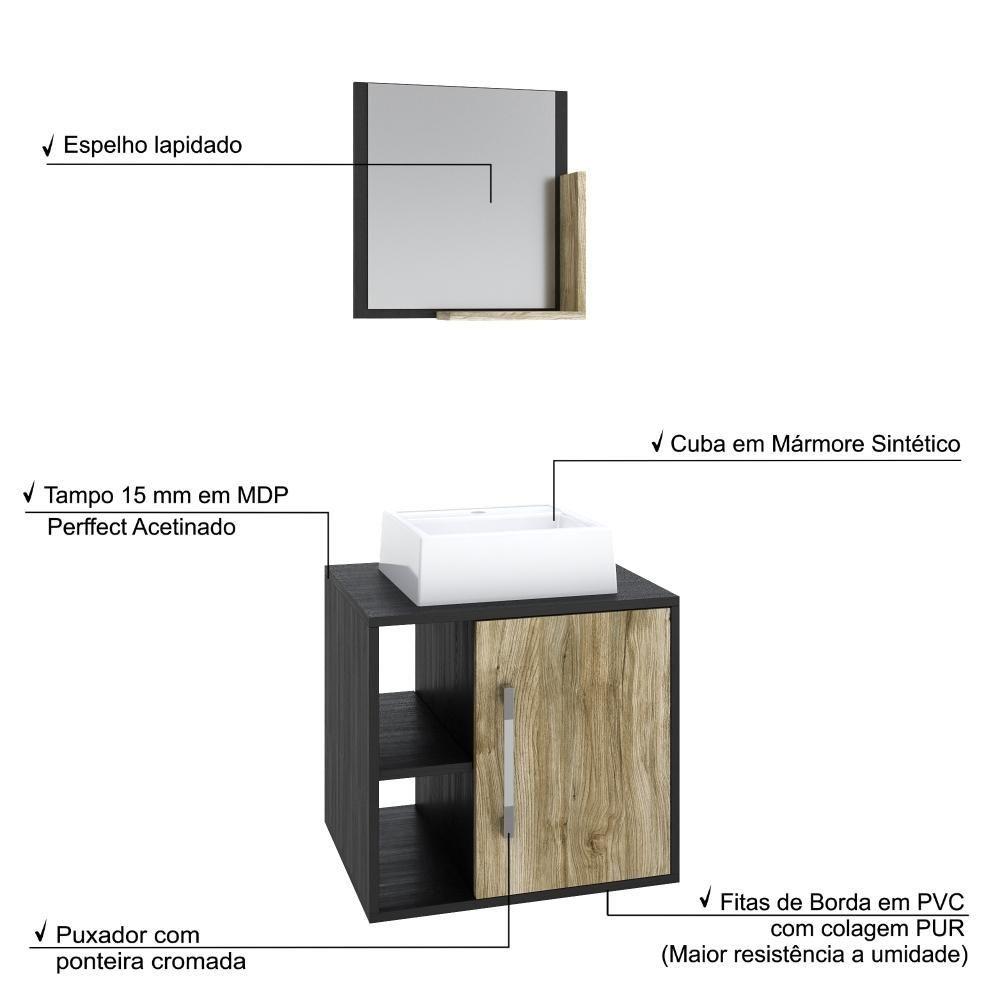 Conjunto Balcão C-cuba Q32 E Espelheira Soft 500 Preto ônix C-branco Chess Preto ônix C-carvalho