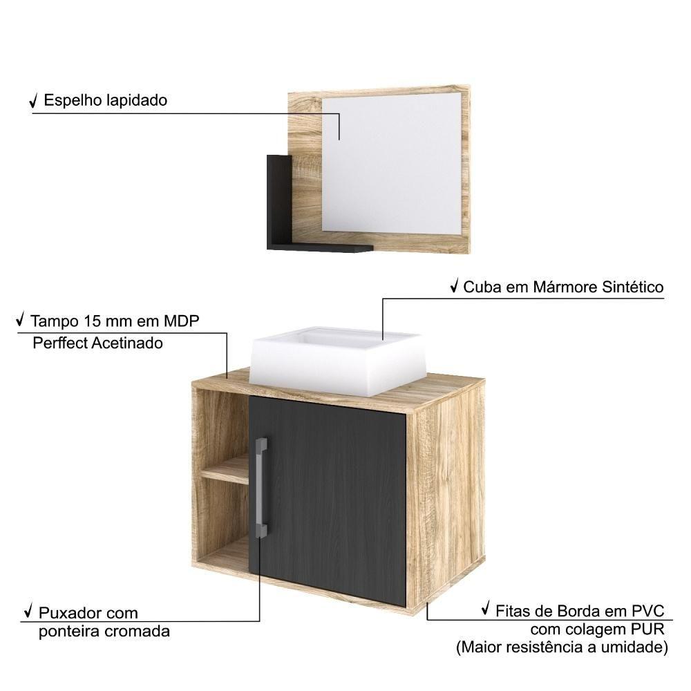 Conjunto Balcão C-cuba Q32 E Espelheira Soft 600 Carvalho C-branco Chess Carvalho C-preto ônix