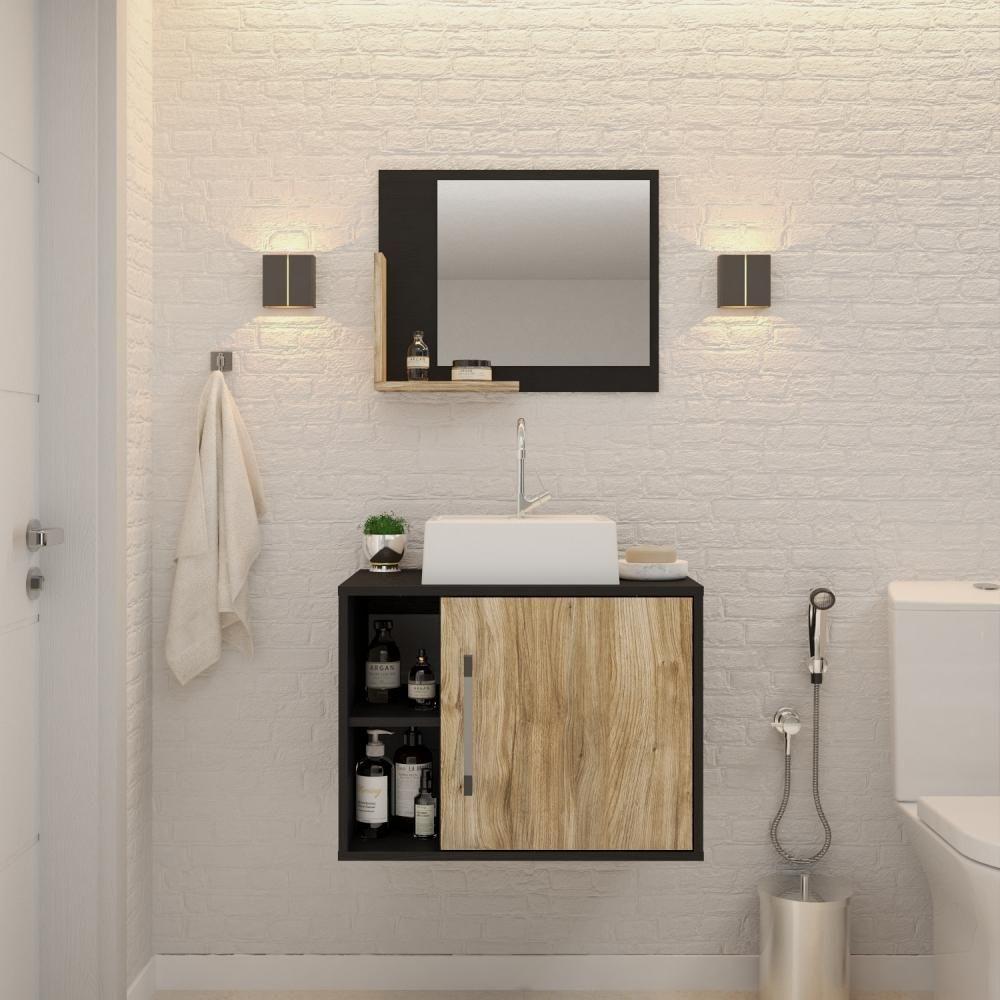 Conjunto Balcão C-cuba Q32 E Espelheira Soft 600 Preto ônix C-branco Chess Preto ônix C-carvalho