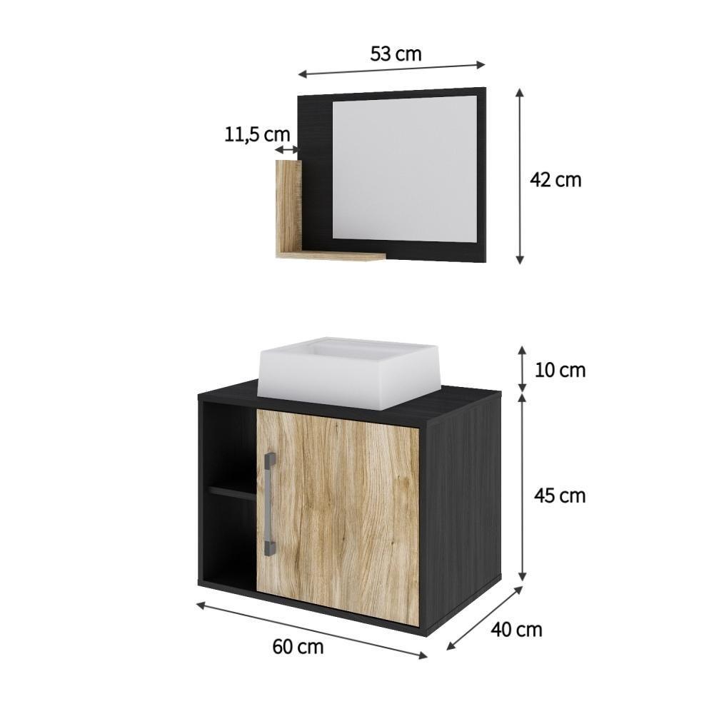 Conjunto Balcão C/cuba Q32 E Espelheira Soft 600 Preto ônix C/branco Chess Preto ônix C/carvalhoSobre o ProdutoConjunto Balcão C/Cuba Q32 e Espelheira Soft 600 Branco ChessDescrição do Produto:O Conjunto Balcão C/Cuba e Espelheira Soft 600 KTSF600 tem design compacto, perfeito para pequenos espaços, conta com uma prateleira lateral e uma cuba de apoio, além da linha Basic traz móveis funcionais e de design tradicional, aliando simplicidade e estilo para seu ambiente de banheiro!Itens Inclusos:1 Conjunto Balcão C/Cuba e EspelheiraDimensões dos Produtos:Gabinete: 60 x 40 x 45 cmEspelheira: 53 x 10,5 x 42 cmCuba 33 x 30 x 10 cmInformações Logísticas (Comp. X Prof. X Alt.) 64 x 45 x 26 cm - Peso: 21,04 KgPeso Total: 21,04 KgObservações:Não acompanha acessórios decorativos. Imagens meramente ilustrativas.Informações Técnicas / Características:- Cor do Produto: Branco Chess- Cor do Predominante: Branco- Marca: Compace- Modelo: KTSF600- Linha: Basic- Material: Mdp - Acabamento: Perffect Acetinado- Escala de Brilho: Fosco- Fita de Borda: Pvc- Possui Portas: 1- Tipo de Porta: Bater- Tipo da Dobradiça: Metálica - Material do Puxador: Abs- Possui Prateleiras: 2- Peso Máximo por Prateleira: 1 kg Espelheira / 3 kg Balcão- Possui Pés: Não, suspenso - Possui Espelho: Sim- Possui Vidro: Sim- Acompanha Cuba / Lavatório: Sim, de Mármore Sintético- Furação para Cuba / Lavatório: Não- Tipo da Cuba: Apoio- Cor da Cuba: Branca- Suporta Até (kg): 16 kg - Peso Lí.: 19,62Kg- Recomendações de Uso, Manutenção e Limpeza: Para a limpeza, utilize flanela seca ou pano macio levemente umedecido em água. Utilize um pano seco em seguida. Evite com produtos químicos (solventes, thinner, acetona, etc) e não utilize nenhum tipo de esponja de aço.- Necessita de Montagem: Sim / Acompanha Manual de Montagem- Complexidade da Montagem: Média: pode ser montado por mais de uma pessoa e/ou necessite de maior conhecimento para montagem.- Garantia: 6 meses Material: Mdp | Acabamento: Perffect Acetinado | Escala de Brilho: Fosco | Fita de Borda: Pvc | Possui Portas: 1 | Tipo de Porta: Bater | Tipo da Dobradiça: Metálica | cor da cuba: Branco | Limite de unidades por venda: É possível comprar até 1 unidade por venda. | Quantidade máxima de pedido: 1 | Comprimento: 60 | Largura: 40 | Altura: 45 | Profundidade: 40 | Preço Tabelado: 304.60000000000002 | Cor: Multicolorido | Certificação de teste externa: Não Aplicável | Baterias são necessárias?: false | Palavras-chave de Pesquisa: Não aplicável | Fonte de energia: Não aplicável | Fabricante: Compace | Componentes incluídos: | Principais Características do Produto 2: | Principais Características do Produto 1: | Peso do item: | Principais Características do Produto 0: | Dimensões do item P x L x A: | Is Fragile: | da peça: | Exige montagem: | do modelo: | de caixas: | Quantidade de itens: Cor: Preto Ônix C/Carvalho