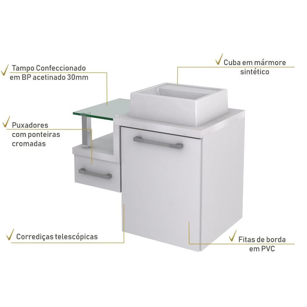 Conjunto Balcão C/cuba Q32 Legno 630 Perffect Acetinado Branco Chess C/branco ChessSobre o ProdutoConjunto Balcão C/Cuba Q32 Legno 630 Perffect AcetinadoDescrição do Produto:O Conjunto Balcão C/Cuba Legno 630 é um produto compacto, de design contemporâneo e minimalista, projetado para se encaixar no seu espaço, composto por um gabinete com gaveta lateral e tampo de apoio de vidro 10mm, além da cuba, sendo perfeito para organizar suas coisas e fazer parte da decoração do seu linha Legno combina a leveza do branco e detalhes em vidro com tons amadeirados, conferindo uma personalidade contemporânea aos móveis de design minimalista e traços retos. Produtos que aliam funcionalidade e praticidade ao seu dia a dia são características marcantes desta coleção!Itens Inclusos:1 Conjunto Balcão C/CubaDimensões dos Produtos:O Gabinete Legno 630 GTLG630 possui 01 porta e 01 gaveta lateral, além do tampo de apoio em vidro 10mm.: x 65 x 43 cmCuba 33 x 30 x 10 cmInformações Logísticas (Comp. X Prof. X Alt.) 47 x 47 x 55 cm - Peso: 24,12 KgPeso Total: 24,12 KgObservações:Não acompanha acessórios decorativos. Imagens meramente ilustrativas.Informações Técnicas / Características:- Cor do Produto: Perffect Acetinado- Cor do Predominante: Branco- Marca: Compace- Modelo: GCLG630- Linha: Legno- Material: Mdp - Acabamento: Perffect Acetinado- Escala de Brilho: Fosco- Fita de Borda: Pvc- Possui Portas: 1- Tipo de Porta: Bater- Tipo da Dobradiça: Metálica- Possui Gavetas: 1- Tipo da Corrediça: Telescópica- Possui Chave: Não- Peso Máximo por Gaveta: 3 kg- Material do Puxador: Abs- Possui Prateleiras: 1- Peso Máximo por Prateleira: 4 kg- Possui Pés: Não, suspenso - Possui Espelho: Não- Possui Vidro: Sim- Acompanha Cuba / Lavatório: Sim, de Mármore Sintético- Furação para Cuba / Lavatório: Não- Tipo da Cuba: Apoio- Cor da Cuba: Branca- Suporta Até (kg): 19 kg - Peso Lí.: 41,11Kg- Recomendações de Uso, Manutenção e Limpeza: Para a limpeza, utilize flanela seca ou pano macio levemente umedecido em água. Utilize um pano seco em seguida. Evite com produtos químicos (solventes, thinner, acetona, etc) e não utilize nenhum tipo de esponja de aço.- Necessita de Montagem: Sim / Acompanha Manual de Montagem- Complexidade da Montagem: Média: pode ser montado por mais de uma pessoa e/ou necessite de maior conhecimento para montagem.- Garantia: 6 meses Material: Mdp | Acabamento: Perffect Acetinado | Escala de Brilho: Fosco | Fita de Borda: Pvc | Possui Portas: 1 | Tipo de Porta: Bater | Tipo da Dobradiça: Metálica | Quantidade máxima de pedido: Comprimento | 65: Largura | Limite de unidades por venda: É possível comprar até 1 unidade por venda. | 50: Profundidade | 43: Preço tabelado | | Componentes incluídos: | Certificação de teste externa: | Baterias são necessárias?: | Cor: | Palavras-chave de Pesquisa: | Principais Características do Produto 2: | Principais Características do Produto 0: | Principais Características do Produto 1: | Fabricante: | Is Fragile: | Dimensões do item P x L x A: | Peso do item: | Exige montagem: | da peça: | do modelo: | Quantidade de itens: | de caixas: Cor: Branco Chess C/Branco Chess