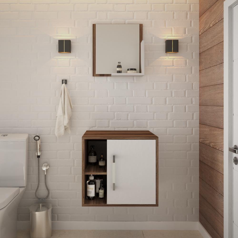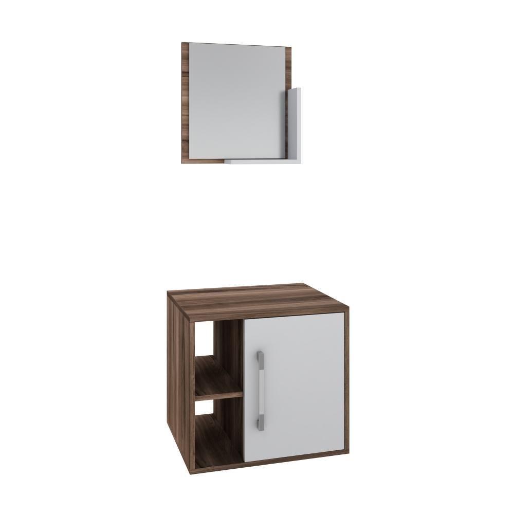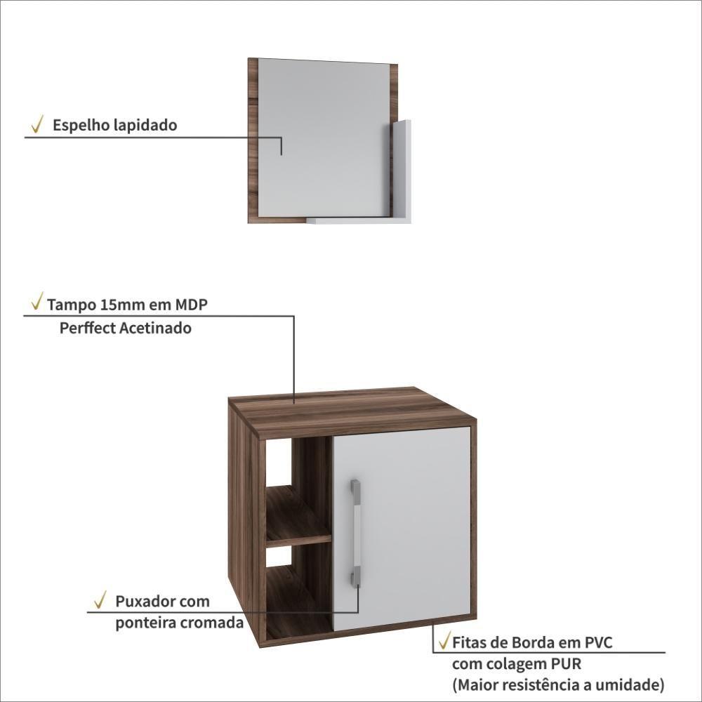 Conjunto Balcão E Espelheira Soft 500 Perffect Acetinado Nogal C-branco Chess