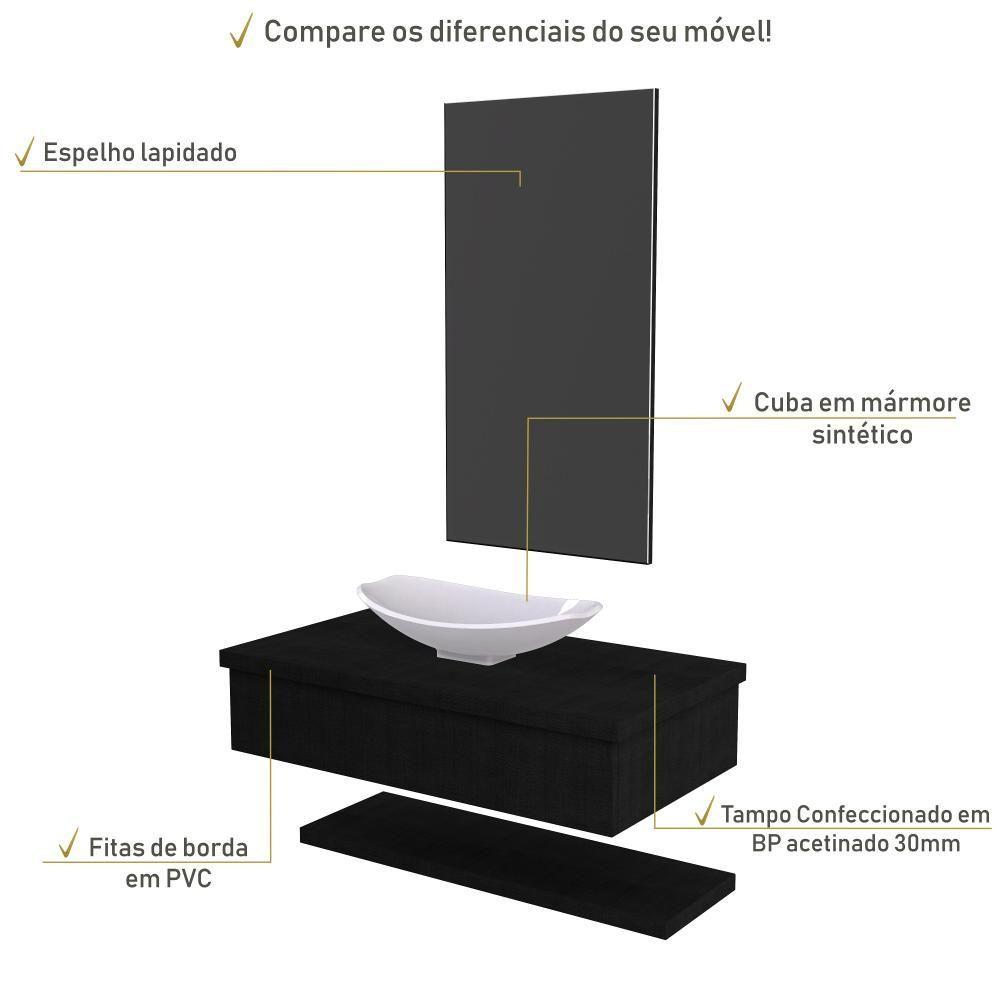 Conjunto Bancada C-cuba L45, Prateleira E Espelheira Metrópole 806 Nogal Preto ônix