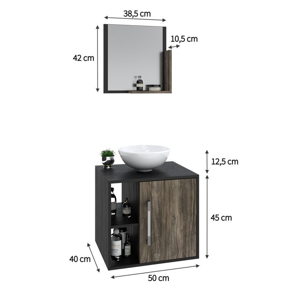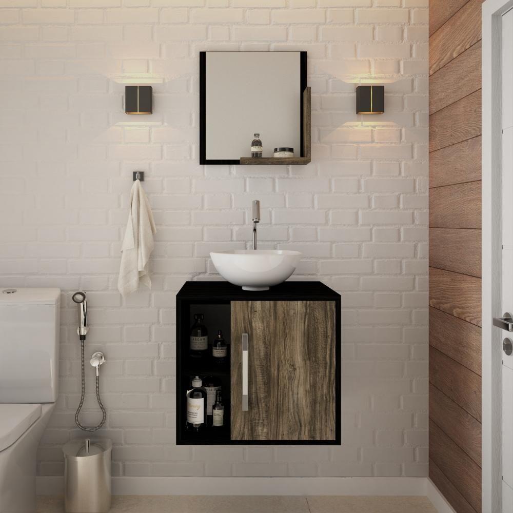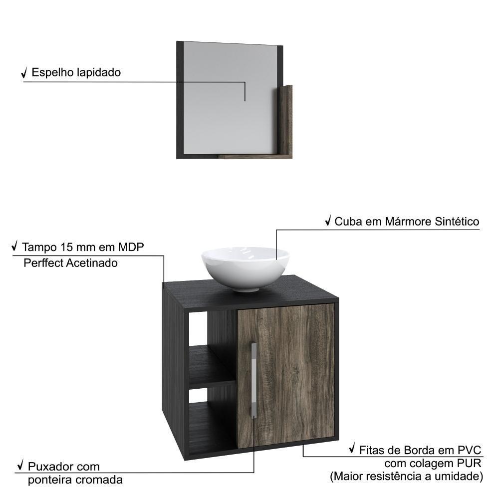Conjunto Balcão C-cuba R30 E Espelheira Soft 500 Preto ônix C-carvalho Preto ônix C-carvalho Dark