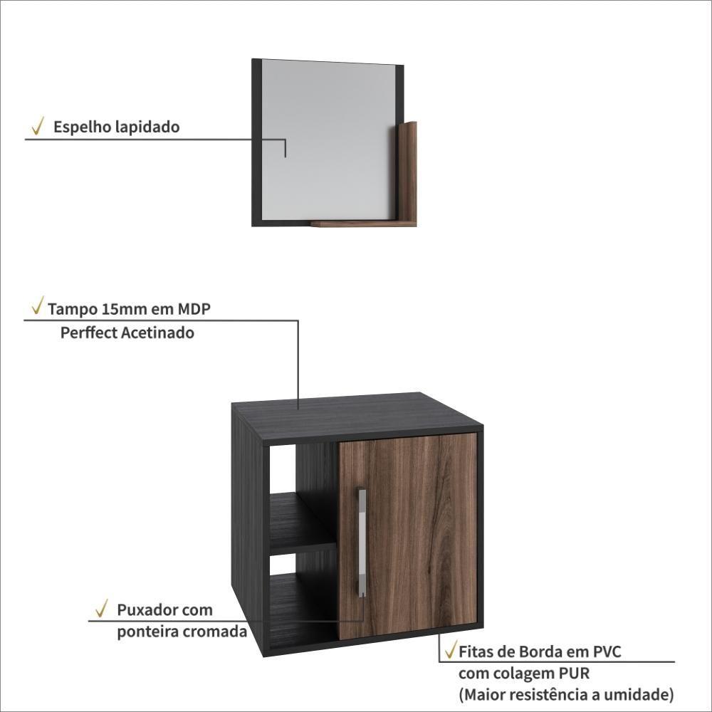Conjunto Balcão E Espelheira Soft 500 Perffect Acetinado Preto ônix C-nogal