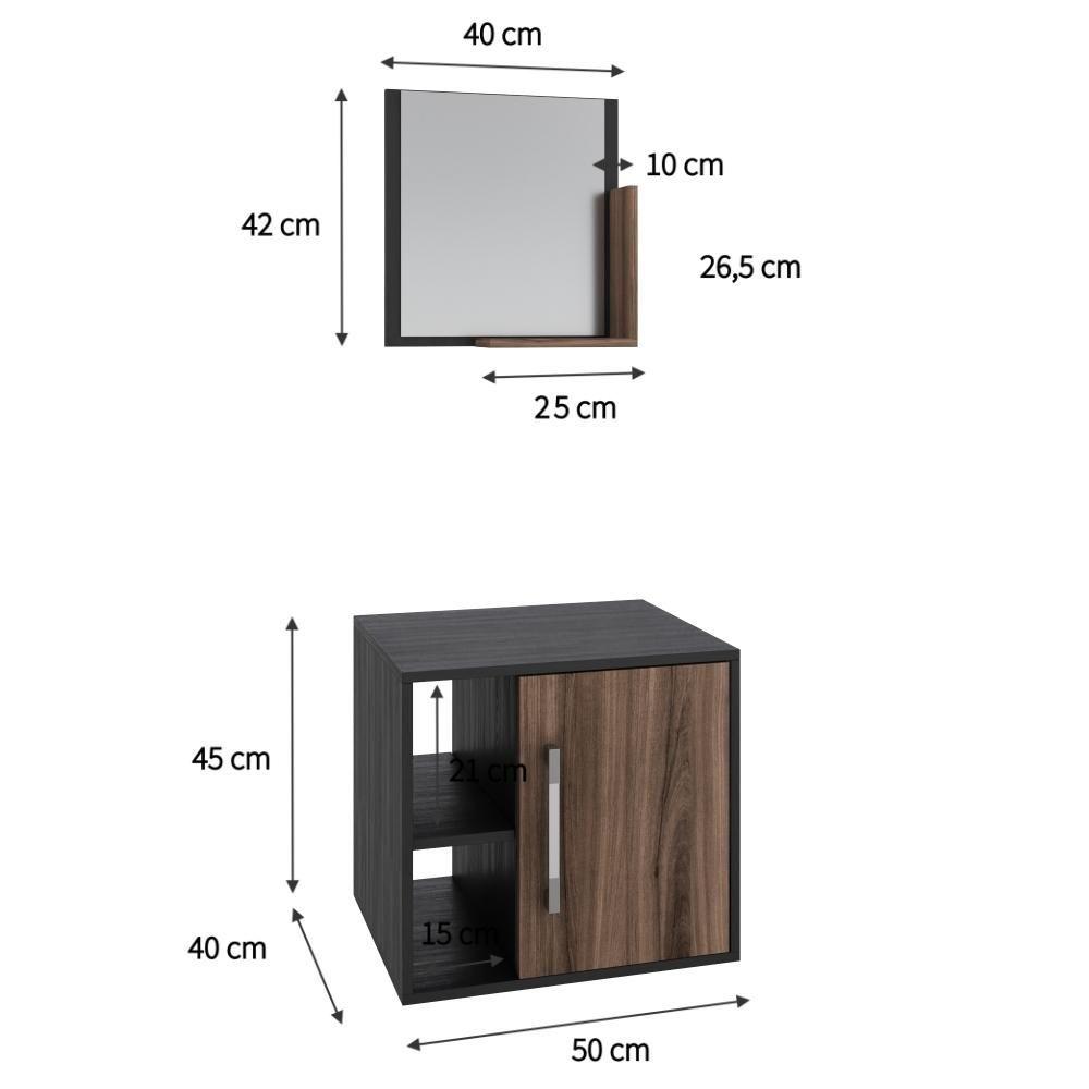 Conjunto Balcão E Espelheira Soft 500 Perffect Acetinado Preto ônix C/nogalSobre o ProdutoConjunto Balcão e Espelheira GESF500 Perffect Acetinado Descrição do Produto: O Conjunto Balcão e Espelheira Soft 500 GESF500 tem design compacto, perfeito para pequenos espaços, conta com uma prateleira lateral e espelheira. A linha Basic traz móveis funcionais e de design tradicional, aliando simplicidade e estilo para seu ambiente de banheiro! Itens Inclusos: 1 Conjunto Balcão e Espelheira Dimensões dos Produtos: Gabinete: 50 x 40 x 45 cm Espelheira: 40 x 10 x 42 cm: Informações Logísticas (Comp. X Prof. X Alt.): 54 x 42 x 28 cm - Peso: 15,41 Kg Peso Total: 15,41 Kg Observações: Não acompanha acessórios decorativos. Imagens meramente ilustrativas. Informações Técnicas / Características: - Cor do Produto: Perffect Acetinado - Marca: Compace - Modelo: GESF500 - Linha: Basic - Material: Mdp - Acabamento: Perffect Acetinado - Escala de Brilho: Fosco - Fita de Borda: Pvc - Possui Portas: 1 - Tipo de Porta: Bater - Tipo da Dobradiça: Metálica - Material do Puxador: Abs - Possui Prateleiras: 2 - Peso Máximo por Prateleira: 1 kg Espelheira / 3 kg Balcão - Possui Pés: Não, suspenso - Possui Espelho: Sim - Possui Vidro: Sim - Acompanha Cuba / Lavatório: Não - Furação para Cuba / Lavatório: Não - Suporta Até (kg): 16 kg - Peso Lí.: 14,18Kg - Recomendações de Uso, Manutenção e Limpeza: Para a limpeza, utilize flanela seca ou pano macio levemente umedecido em água. Utilize um pano seco em seguida. Evite com produtos químicos (solventes, thinner, acetona, etc) e não utilize nenhum tipo de esponja de aço. - Necessita de Montagem: Sim / Acompanha Manual de Montagem - Complexidade da Montagem: Média: pode ser montado por mais de uma pessoa e/ou necessite de maior conhecimento para montagem. - Garantia: 6 meses Material: Mdp | Acabamento: Perffect Acetinado | Escala de Brilho: Fosco | Fita de Borda: Pvc | Possui Portas: 1 | Tipo de Porta: Bater | Tipo da Dobradiça: Metálica | Limite de unidades por venda: É possível comprar até 1 unidade por venda. | Comprimento: 50 | Largura: 40 | Quantidade máxima de pedido: 1 | Altura: 45 | Profundidade: 40 | Preço Tabelado: | Cor: Multicolorido | Certificação de teste externa: Não Aplicável | Baterias são necessárias?: false | Palavras-chave de Pesquisa: Não aplicável | Fonte de energia: Não aplicável | Fabricante: Compace | da peça: | Is Fragile: | Dimensões do item P x L x A: | Principais Características do Produto 0: | Principais Características do Produto 1: | Componentes incluídos: | Principais Características do Produto 2: | Peso do item: | Exige montagem: | do modelo: | Quantidade de itens: | de caixas: Cor: Preto Ônix C/Nogal