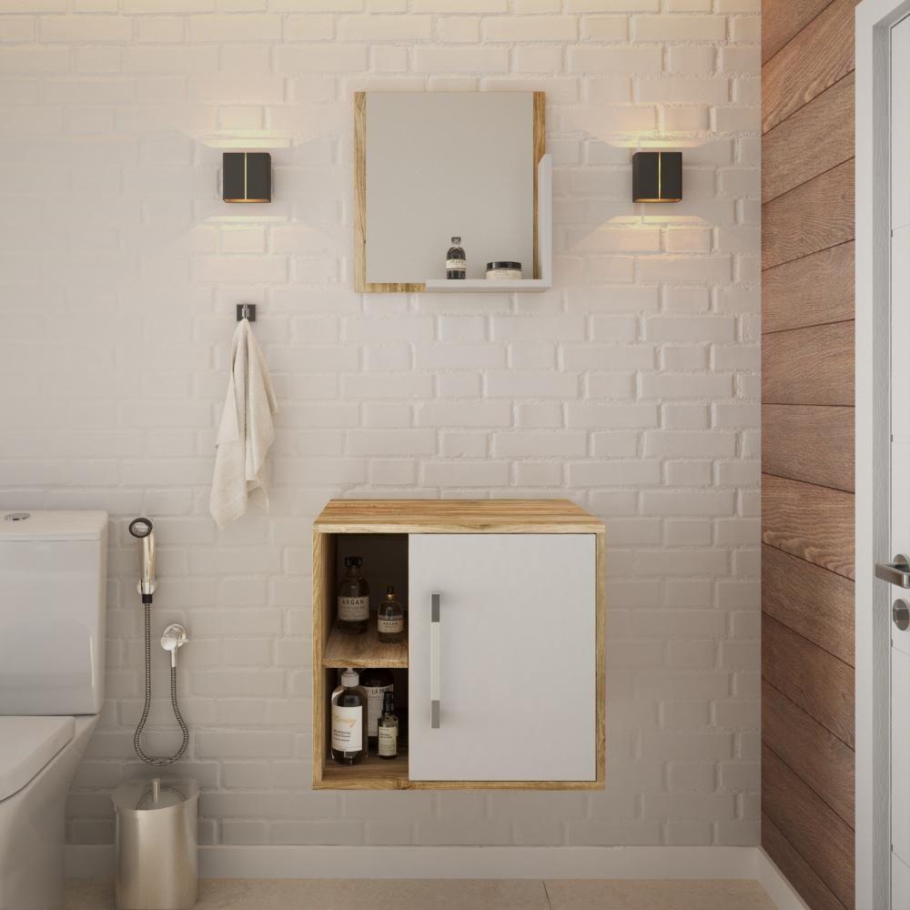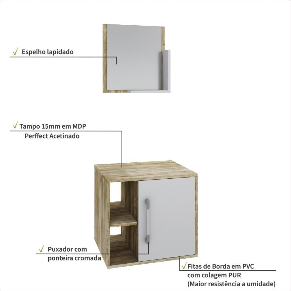 Conjunto Balcão E Espelheira Soft 500 Perffect Acetinado Carvalho C-branco Chess
