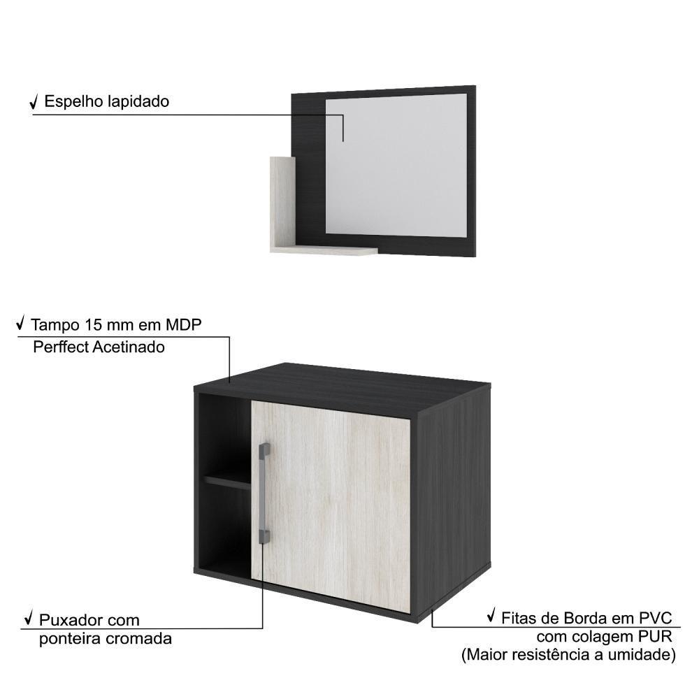 Conjunto Balcão E Espelheira Soft 600 Perffect Acetinado Preto ônix C-snow