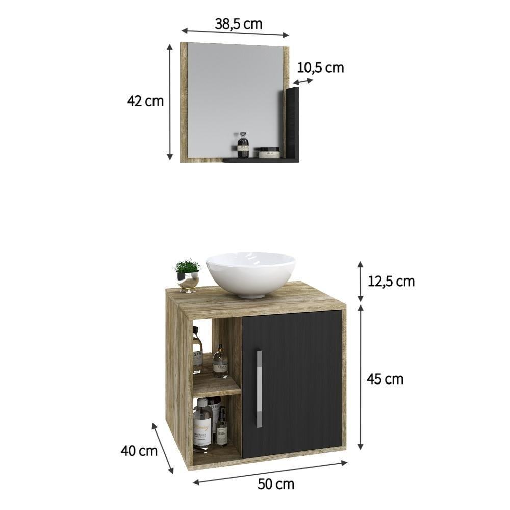 Conjunto Balcão C/cuba R30 E Espelheira Soft 500 Carvalho C/branco Chess Carvalho C/preto ônixSobre o ProdutoConjunto Balcão C/Cuba R30 e Espelheira Soft 500 Branco ChessDescrição do Produto:O Conjunto Balcão C/Cuba e Espelheira Soft 500 KTSF500 tem design compacto, perfeito para pequenos espaços, conta com uma prateleira lateral e uma cuba de apoio, além da linha Basic traz móveis funcionais e de design tradicional, aliando simplicidade e estilo para seu ambiente de banheiro!Itens Inclusos:1 Conjunto Balcão C/Cuba e EspelheiraDimensões dos Produtos:Gabinete: 50 x 40 x 45 cmEspelheira: 40 x 10 x 42 cmCuba 30,5 x 30,5 x 12,5 cmInformações Logísticas (Comp. X Prof. X Alt.) 54 x 42 x 28 cm - Peso: 18,58 KgPeso Total: 18,58 KgObservações:Não acompanha acessórios decorativos. Imagens meramente ilustrativas.Informações Técnicas / Características:- Cor do Produto: Branco Chess- Cor do Predominante: Branco- Marca: Compace- Modelo: KTSF500- Linha: Basic- Material: Mdp - Acabamento: Perffect Acetinado- Escala de Brilho: Fosco- Fita de Borda: Pvc- Possui Portas: 1- Tipo de Porta: Bater- Tipo da Dobradiça: Metálica - Material do Puxador: Abs- Possui Prateleiras: 2- Peso Máximo por Prateleira: 1 kg Espelheira / 3 kg Balcão- Possui Pés: Não, suspenso - Possui Espelho: Sim- Possui Vidro: Sim- Acompanha Cuba / Lavatório: Sim, de Mármore Sintético- Furação para Cuba / Lavatório: Não- Tipo da Cuba: Apoio- Cor da Cuba: Branca- Suporta Até (kg): 16 kg - Peso Lí.: 17,35Kg- Recomendações de Uso, Manutenção e Limpeza: Para a limpeza, utilize flanela seca ou pano macio levemente umedecido em água. Utilize um pano seco em seguida. Evite com produtos químicos (solventes, thinner, acetona, etc) e não utilize nenhum tipo de esponja de aço.- Necessita de Montagem: Sim / Acompanha Manual de Montagem- Complexidade da Montagem: Média: pode ser montado por mais de uma pessoa e/ou necessite de maior conhecimento para montagem.- Garantia: 6 meses Material: Mdp | Acabamento: Perffect Acetinado | Escala de Brilho: Fosco | Fita de Borda: Pvc | Possui Portas: 1 | Tipo de Porta: Bater | Tipo da Dobradiça: Metálica | Limite de unidades por venda: É possível comprar até 1 unidade por venda. | Tipo de produto: Gabinete de banheiro | Quantidade máxima de pedido: 1 | Fabricante: Compace | Comprimento: 50 | Largura: 40 | Altura: 45 | Profundidade: 45 | Preço trabelado: | Componentes incluídos: | Principais Características do Produto 0: | Baterias são necessárias?: | Principais Características do Produto 2: | Cor: | Principais Características do Produto 1: | Certificação de teste externa: | Palavras-chave de Pesquisa: | Is Fragile: | Dimensões do item P x L x A: | Exige montagem: | da peça: | Peso do item: | do modelo: | Quantidade de itens: | de caixas: Cor: Carvalho C/Preto Ônix