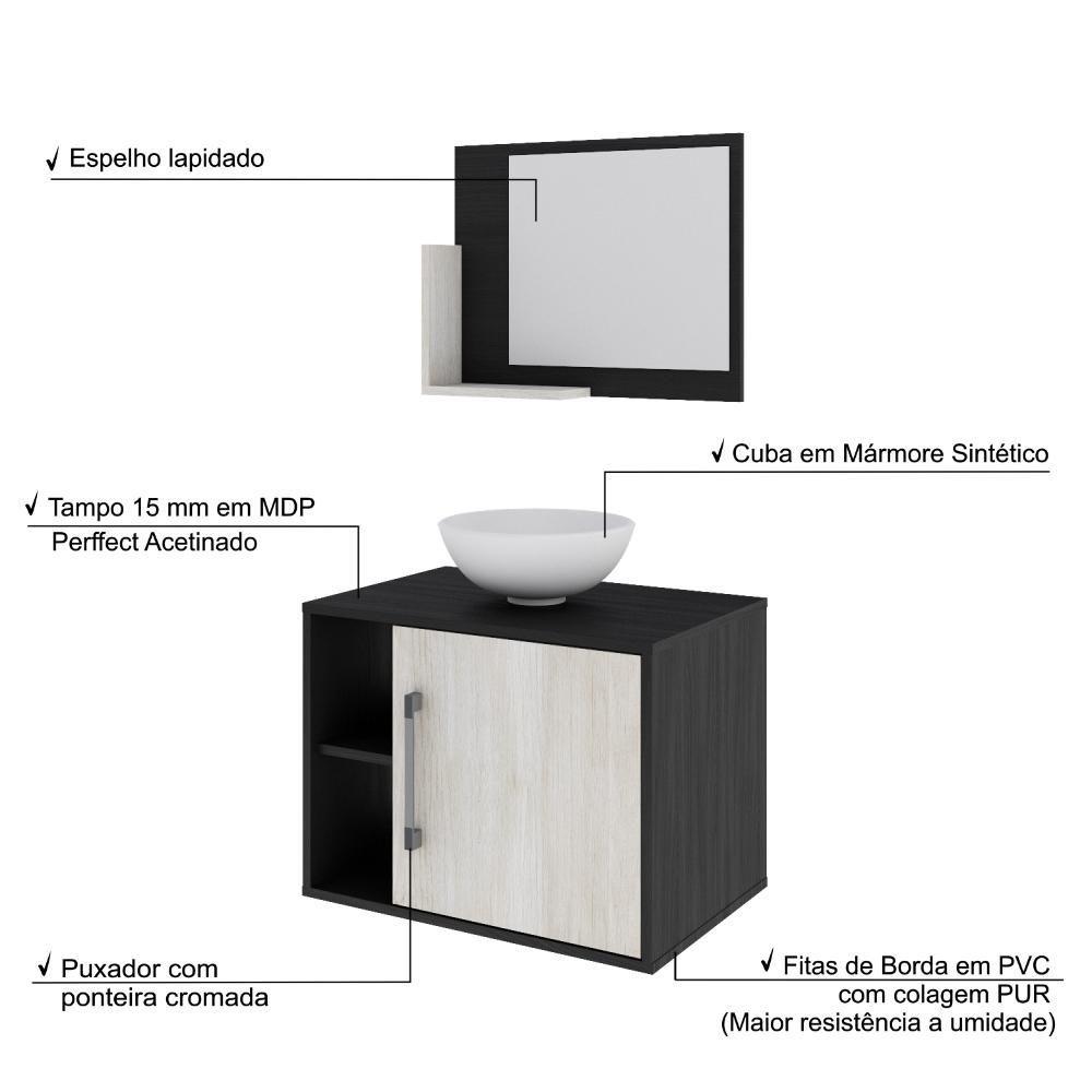 Conjunto Balcão C-cuba R30 E Espelheira Soft 600 Preto ônix C-nogal Preto Onix C-snow