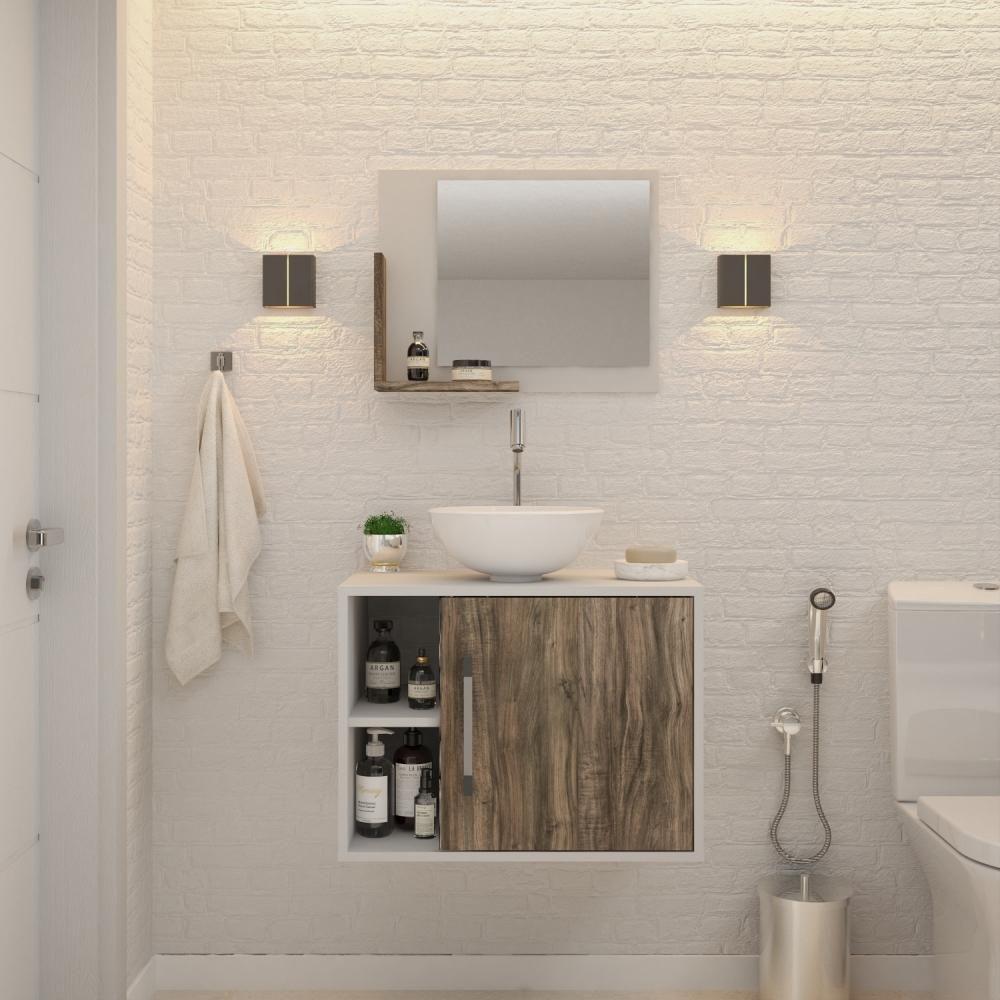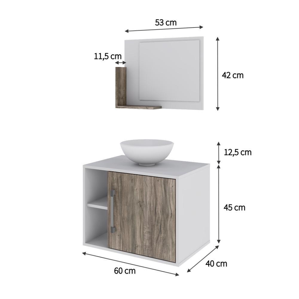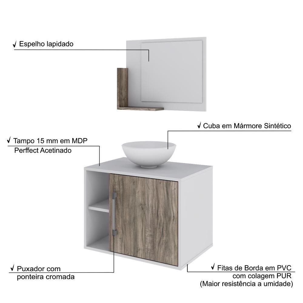 Conjunto Balcão C-cuba R30 E Espelheira Soft 600 Branco Chess C-carvalho Branco Chess C-carvalho Dark