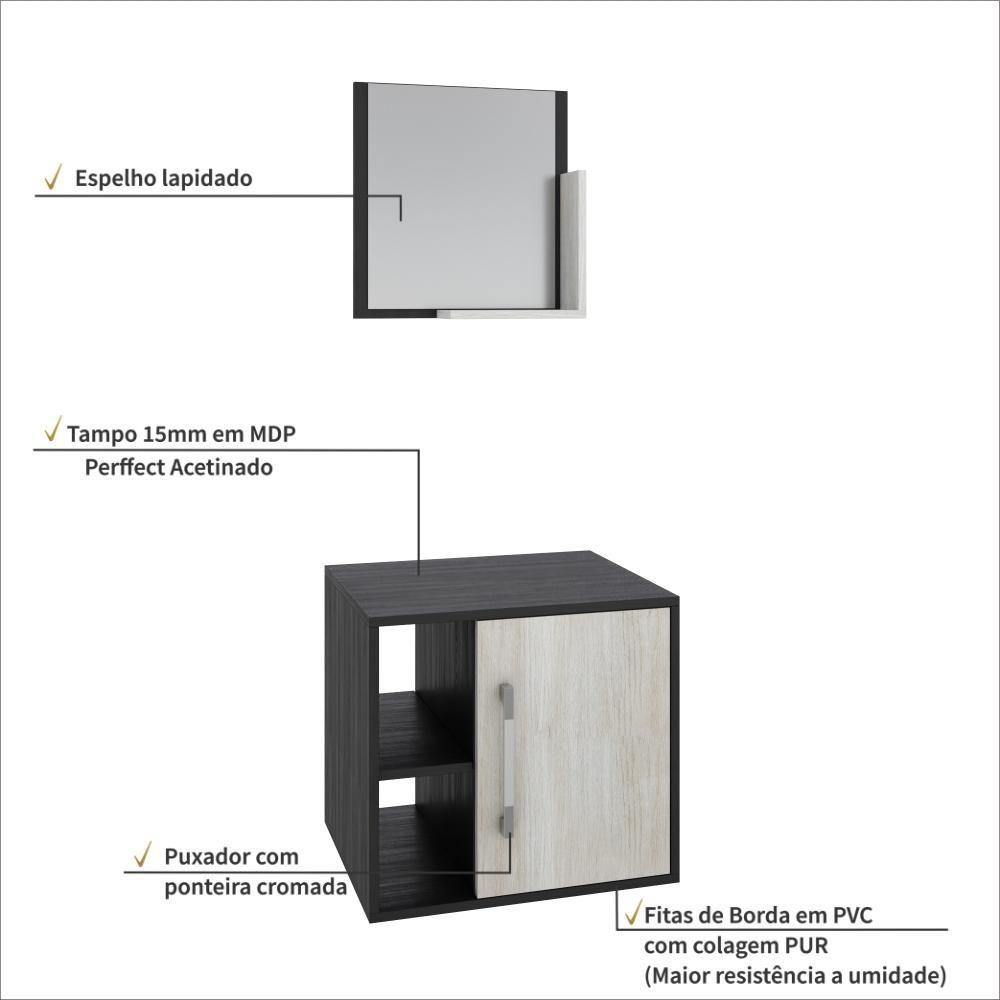 Conjunto Balcão E Espelheira Soft 500 Perffect Acetinado Preto Onix C-snow