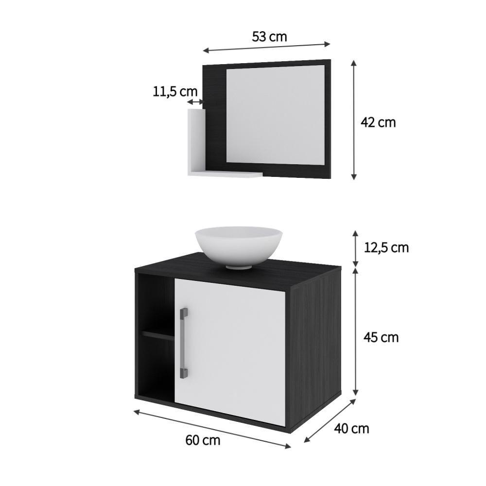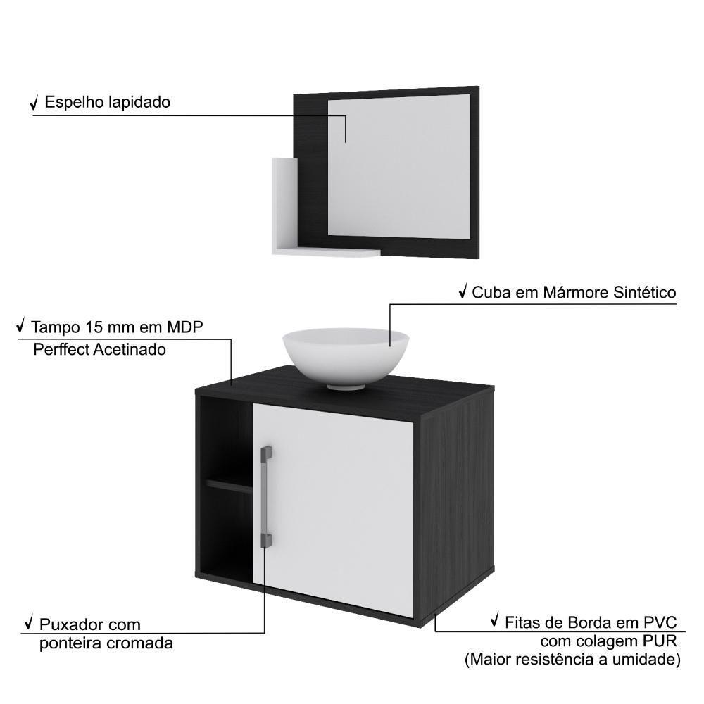 Conjunto Balcão C-cuba R30 E Espelheira Soft 600 Preto ônix Preto ônix C-branco Chess