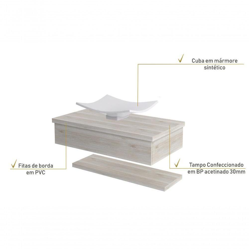 Conjunto Bancada C/cuba F44 E Prateleira Metrópole 805 Preto ônix SnowSobre o ProdutoConjunto Bancada C/Cuba F44 e Prateleira Metrópole 805 Branco ChessDescrição do Produto:O Conjunto (Bancada + Cuba + Prateleira) Metrópole KTME805 é um produto compacto de design simples e moderno, projetado para pequenos espaços, perfeito para fazer parte da decoração do seu lavabo ou banheiro. Conta com uma cuba de apoio e uma prateleira com pinos invisíveis, além do suporte linha Metrópole é uma coleção de móveis modernos e com inúmeras possibilidades de composições, combinando design contemporâneo e muita funcionalidade. Diversas possibilidades de cores e modelos de cubas formam uma solução perfeita para as mais opções de decoração e projetos em ambientes de banheiro. É você quem decide!!!Itens Inclusos:1 Conjunto Bancada C/Cuba e PrateleiraDimensões dos Produtos:Bancada: 80 x 43 x 19 cmCuba 43,5 x 36 x 12 cmInformações Logísticas (Comp. X Prof. X Alt.) 83 x 47 x 26 cm - Peso: 17,63 KgPeso Total: 17,63 KgObservações:Não acompanha acessórios decorativos. Imagens meramente ilustrativas.Informações Técnicas / Características:- Cor do Produto: Branco Chess- Cor do Predominante: Branco- Marca: Compace- Modelo: KTME805- Linha: Metrópole- Material: Mdp - Acabamento: Perffect Acetinado- Escala de Brilho: Fosco- Fita de Borda: Pvc - Possui Gavetas: Não - Material do Puxador: Alumínio- Possui Prateleiras: 1- Peso Máximo por Prateleira: 02 kg- Possui Pés: Não, suspenso - Possui Espelho: Não - Acompanha Cuba / Lavatório: Sim, de Mármore Sintético- Furação para Cuba / Lavatório: Não- Tipo da Cuba: Apoio- Cor da Cuba: Branca- Suporta Até (kg): 12 kg - Peso Lí.: 16,56Kg- Recomendações de Uso, Manutenção e Limpeza: Para a limpeza, utilize flanela seca ou pano macio levemente umedecido em água. Utilize um pano seco em seguida. Evite com produtos químicos (solventes, thinner, acetona, etc) e não utilize nenhum tipo de esponja de aço.- Necessita de Montagem: Sim / Acompanha Manual de Montagem- Complexidade da Montagem: Média: pode ser montado por mais de uma pessoa e/ou necessite de maior conhecimento para montagem.- Garantia: 6 meses- Outras Características: Montagem ível, o suporte toalheiro pode ser montado em qualquer um dos lados. Material: Mdp | Acabamento: Perffect Acetinado | Escala de Brilho: Fosco | Fita de Borda: Pvc | Tipo de Produto: Bancada para Banheiro | Comprimento: 80 | Largura: 42 | Limite de unidades por venda: É possível comprar até 1 unidade por venda. | Altura: 19 | Quantidade máxima de pedido: 1 | Profundidade: 42 | Preço tabelado: | Cor: Multicolorido | Certificação de teste externa: Não Aplicável | Baterias são necessárias?: false | Palavras-chave de Pesquisa: Não aplicável | Fonte de energia: Não aplicável | Fabricante: Compace | Principais Características do Produto 0: | Principais Características do Produto 2: | Principais Características do Produto 1: | da peça: | Componentes incluídos: | Dimensões do item P x L x A: | Peso do item: | Is Fragile: | Exige montagem: | de caixas: | do modelo: | Quantidade de itens: Cor: Snow