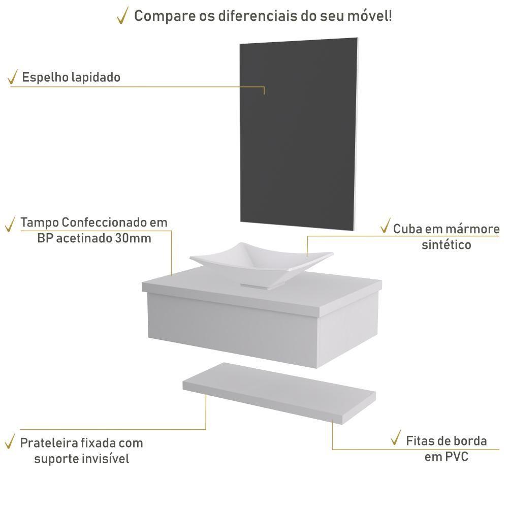 Conjunto Bancada C-cuba L30, Prateleira E Espelheira Metrópole 606 Perffect Acetinado Branco Chess