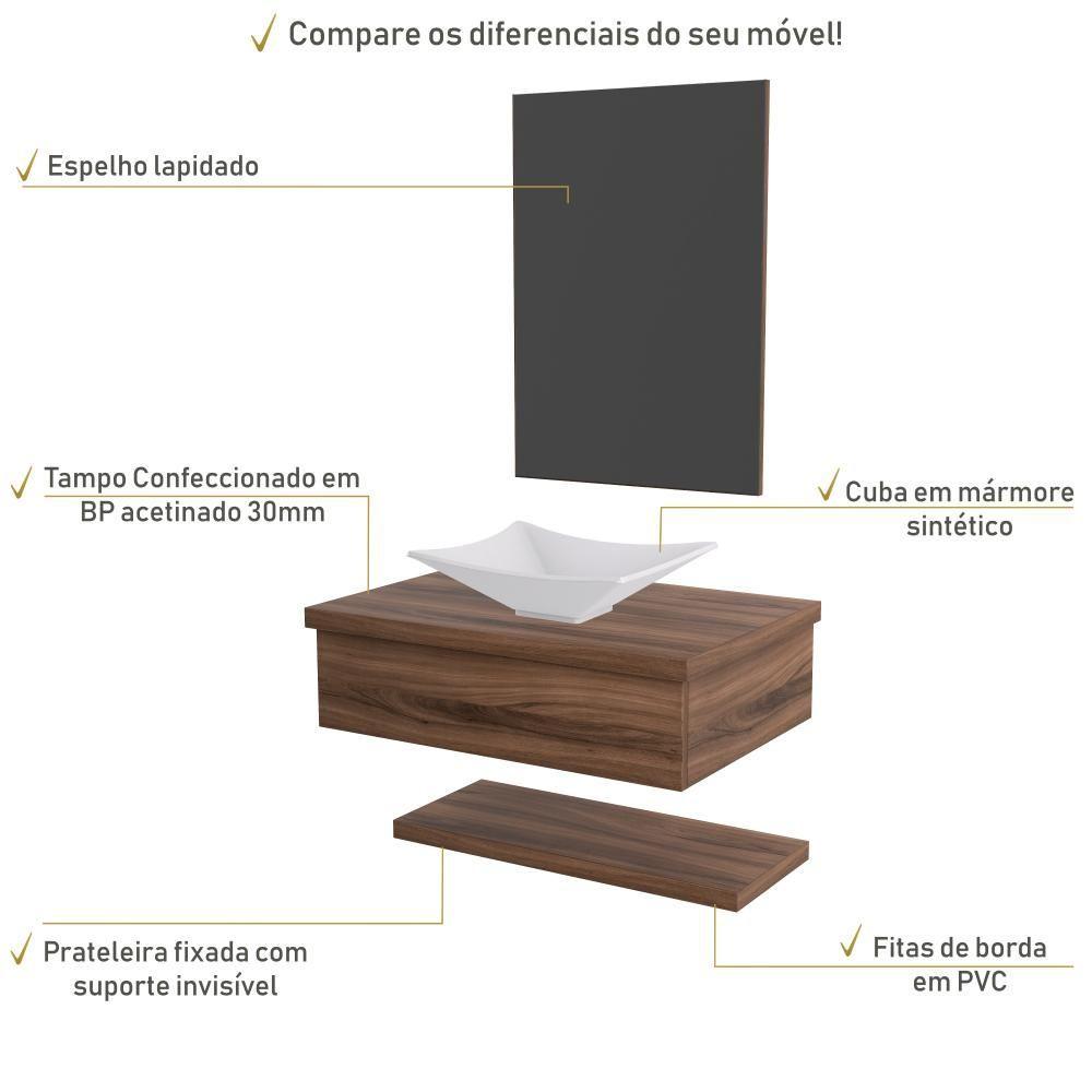 Conjunto Bancada C-cuba L30, Prateleira E Espelheira Metrópole 606 Carvalho Dark Nogal